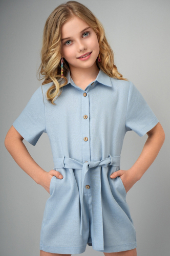 Жилет с V-вырезом и спущенным плечом гармонично сочетается с юбкой до колена, создавая лаконичный и практичный школьный образ. Синий костюм для девочки легко адаптируется под разные случаи — от повседневных уроков до торжественных мероприятий.