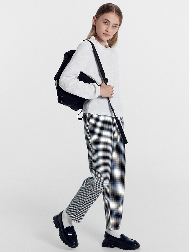 Прекрасные школьные брюки прямого силуэта для девочек станут незаменимым элементом гардероба, который подчеркнет нарядный образ. Их высокая посадка позволит создать идеальную пропорцию, выгодно подчеркнув линию талии. Отрезной пояс с эластичной тесьмой внутри гарантирует отличную поддержку и комфорт в течение дня, не стесняя движений. На передних половинках брюк обработаны стильные карманы. Это практичное и удобное решение, которое позволит легко хранить необходимые мелочи. Смесовой материал с добавлением вискозы, из которого изготовлены брюки, обладает отличной прочностью и долговечностью, поэтому они сохранят свой первоначальный вид даже после многократных стирок. Кроме того, этот он не сковывает движения, благодаря чему ребенок может чувствовать себя уверенно и свободно в любой ситуации. Рекомендуем эту стильную школьную новинку для вашей девочки!