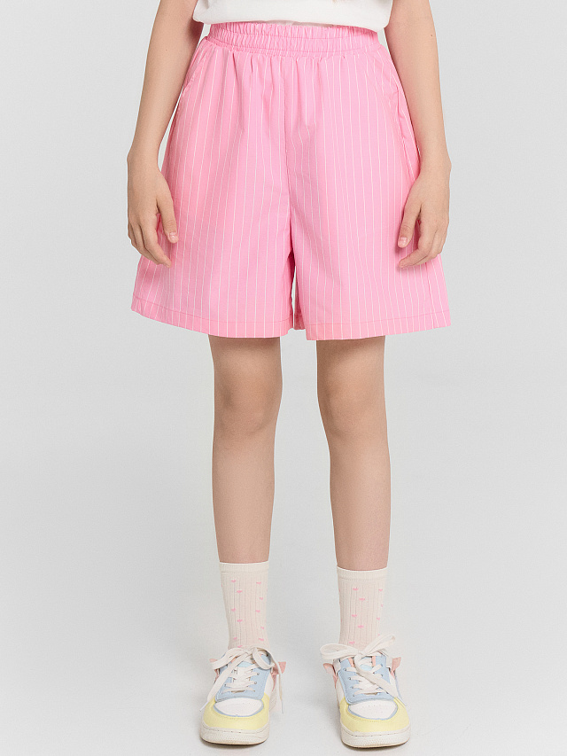 Шорты с посадкой на талии прямого силуэта. Пояс отрезной с резиной внутри 50RV, отстрочен. По переду обработаны карманы «хулиганы». Низ изделия застрочен швом в подгибку.