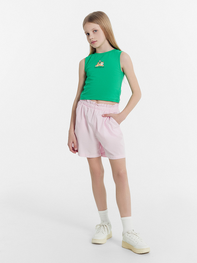 Короткие шорты для девочек из высококачественного хлопка. Пояс отрезной с эластичной тесьмой, образующей сборку. На задних деталях шорт клапаны имитирующие карман, с закрепкой посередине. Стильная и удобная модель — лучший выбор для жаркого лета. Подойдет для прогулок, отдыха с друзьями. Такие детские шорты можно взять с собой в отпуск или отправиться в путешествие. Широкий размерный ряд. Модель представлена в нескольких расцветках. Рекомендуем для красивых летних образов!