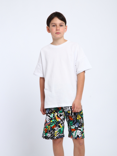 Летние легкие шорты для мальчиков-подростков с ярким молодежным принтом. Крой широкий свободный до колен с удобными кармашки в боковых швах. Пояс на комфортной широкой резинке. За счет удобной длины и свободного кроя, летние бриджи для мальчика позволяют активно двигаться, играть, заниматься спортивными играми даже в самую жаркую погоду. Модные яркие шорты составят  основу летнего гардероба мальчика-подростка, подходят на каждый день, на пляж, на дачу, на море, для отдыха, а также для физкультуры в школе, занятий спортом, бегом, для тренировок. Можно комплектовать с футболкой. Лонгсливом, облегченной толстовкой ,свитшотом, худи.