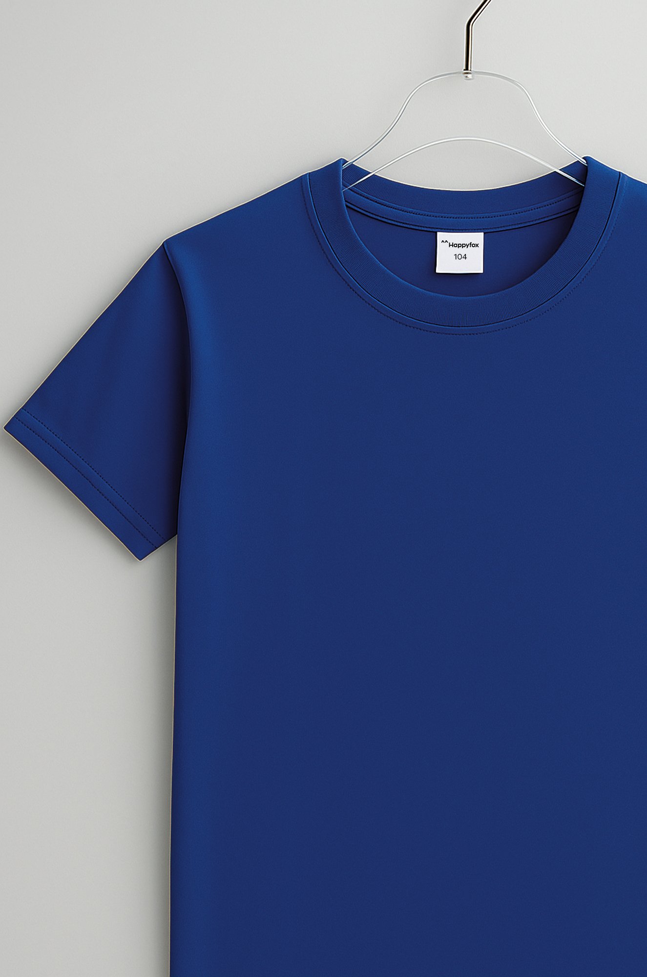 Униве..показатьрсальная классическая футболка для девочек и мальчиков подойдет на каждый день! Детская футболка синего цвета выполнена из 100% хлопка.