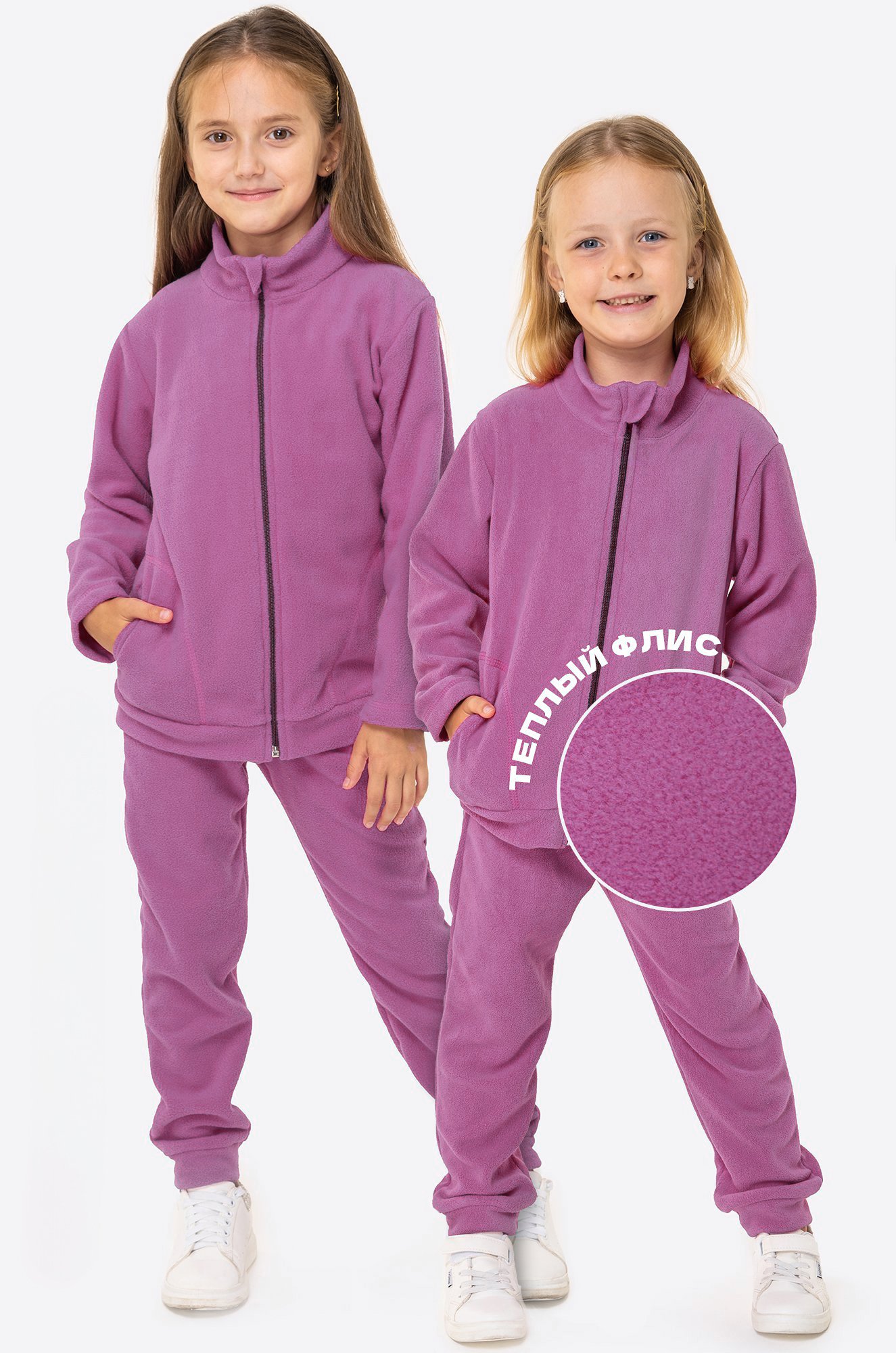 — сиреневый костюм из флиса приятен к телу, отлично сохраняет тепло;