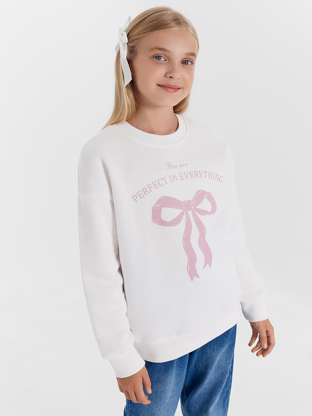 Свитшот для девочек белый с печатью