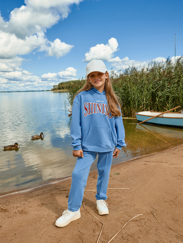 Свитшот для девочек свободного силуэта — комфортная и стильная модель, идеально подходящая для повседневной носки. Выполненный из футера без подчеса, он остается легким и приятным к телу, обеспечивая хорошую воздухопроницаемость и устойчивость к износу. Свободный крой дарит свободу движений, а спущенная линия плеча создает расслабленный силуэт со стильным акцентом. Круглая горловина оформлена эластичной обтачкой из рибаны — благодаря этому она не теряет форму и хорошо ложится на шею. Манжеты на рукавах и пояс, также выполненные из рибаны, надежно фиксируют изделие, подчеркивают форму и завершают образ. Такая модель легко комбинируется с джинсами, спортивными брюками или юбкой, оставаясь актуальной и удобной в школьном гардеробе, на прогулке или дома.
