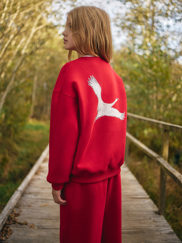 Свитшот для девочек красный из коллекции «Zakaзnik El’nya / Заказник Ельня»