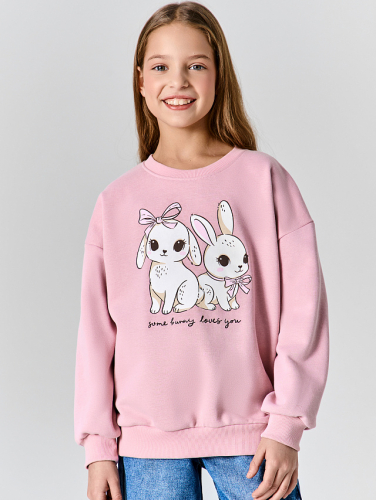 Свитшот для девочек розовый с надписью "Some bunny loves you"