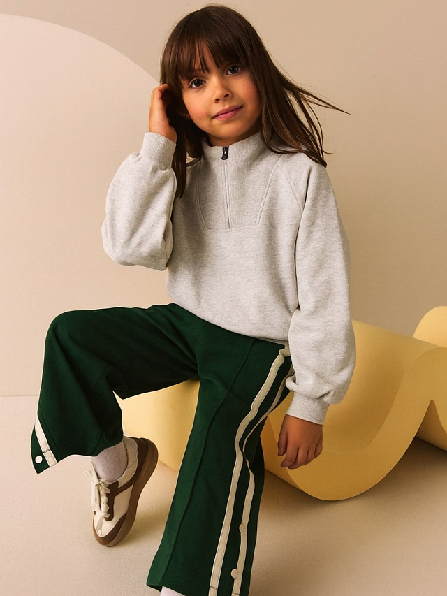 Свитшот для девочек с воротником — это уютная и стильная модель для повседневной носки. Свободный силуэт и спущенная линия плеча обеспечивают полную свободу движений, а длинные рукава реглан мягко облегают руки. Перед и спинка выполнены цельными, что исключает лишние швы и повышает комфорт.