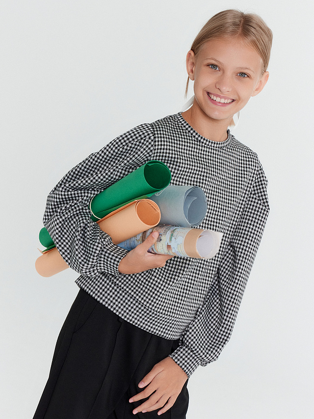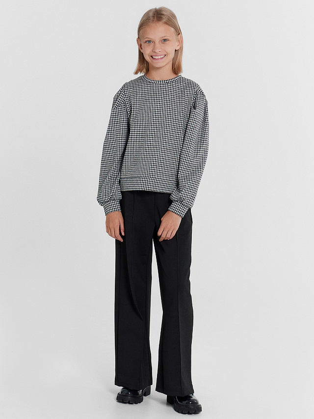 Свитшот для девочек в черном цвете с паттерном "клетка виши"