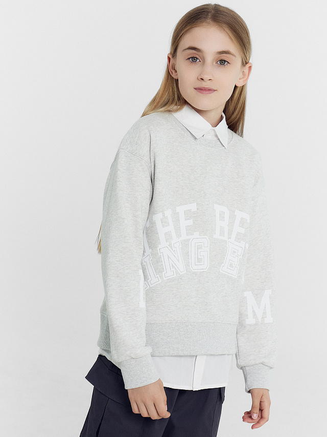 Стильный свитшот для девочек из футера без подчеса. Модель свободного силуэта. Рукава длинные, втачные. Линия плеча спущена. По спинке кокетка. Горловина круглой формы из трикотажной рибаны. Низ изделия фигурный, перед короче спинки. По низу рукавов выполнены манжеты из трикотажной рибаны. Комфортный и удобный свитшот для повседневной носки в школу и на прогулки с друзьями. Широкий размерный и цветовой ряд. Рекомендуем на весну, лето и демисезон!