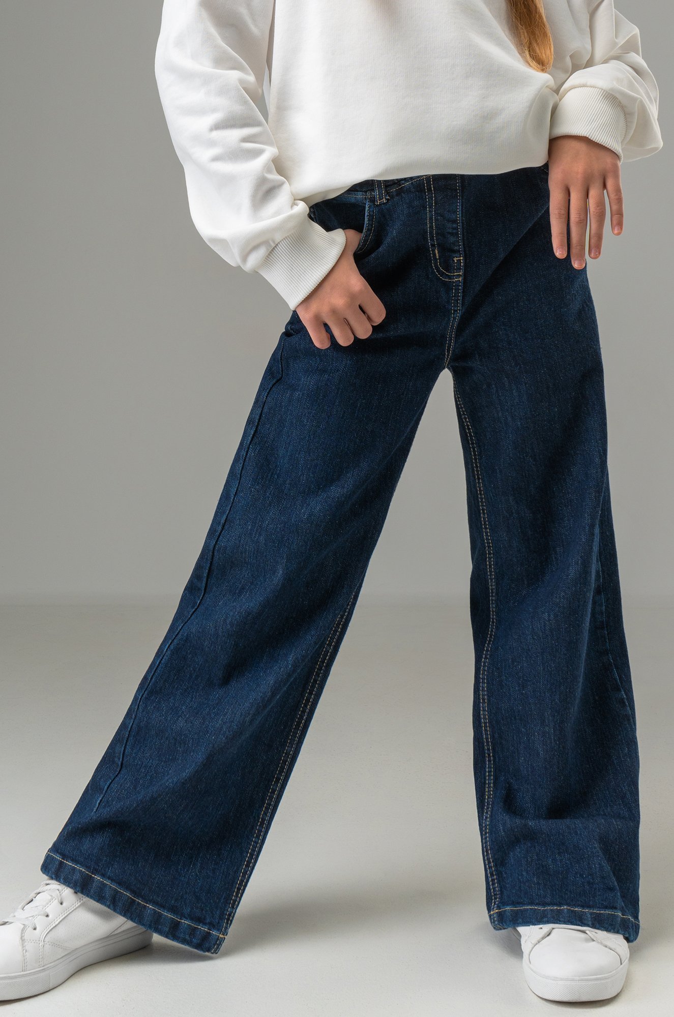 П..показатьорадуйте свою девочку стильными синими джинсами палаццо на высокой талии! Классные подростковые брюки — идеальный выбор для тех, кто хочет сочетать комфорт и современные тренды в одном.