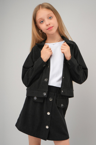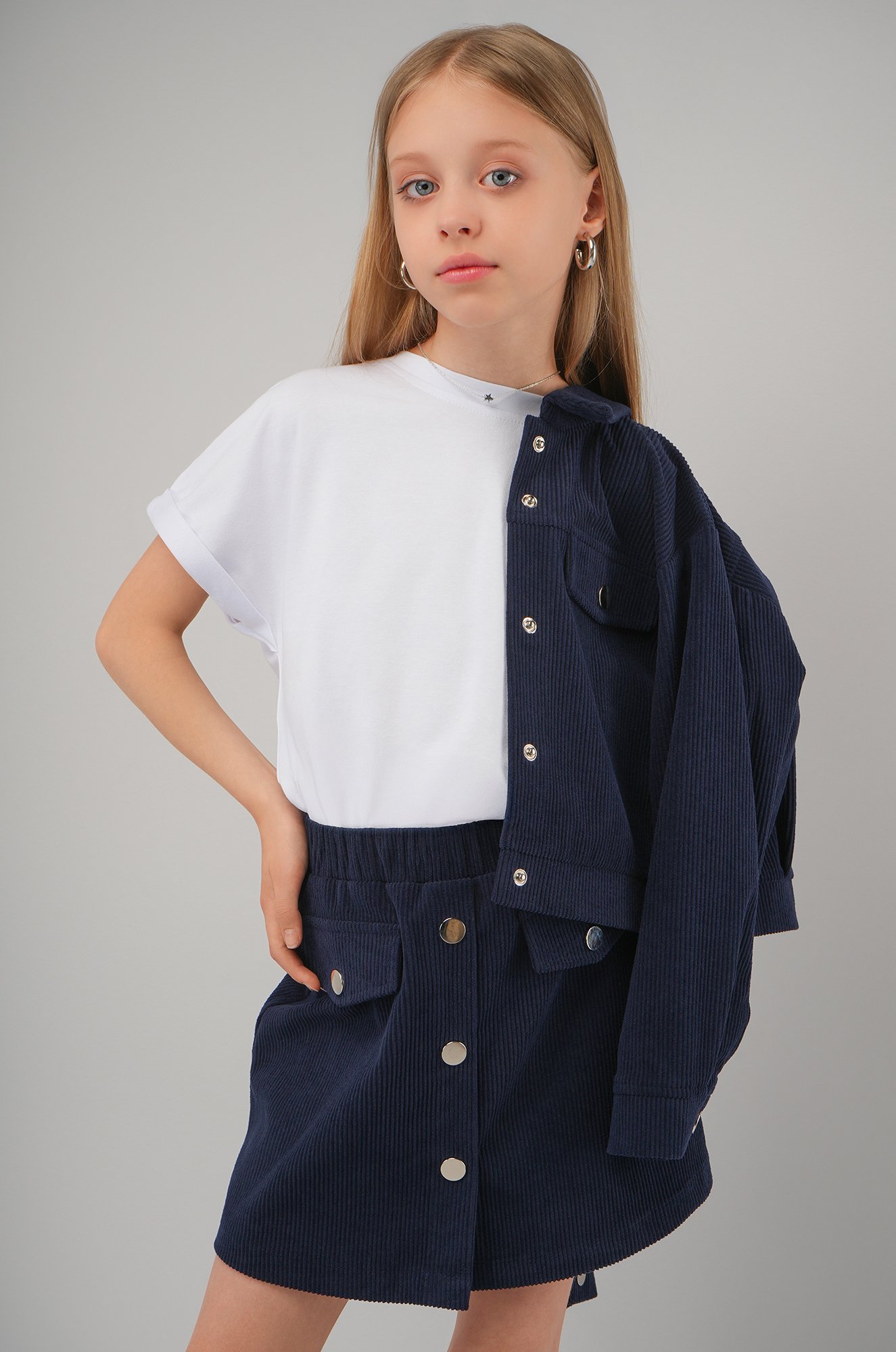 Детский вельветовый костюм двойка сочетает элегантность и комфорт. Темно-синий костюм с юбкой для девочки и девочки подростка дополнит школьные образы.