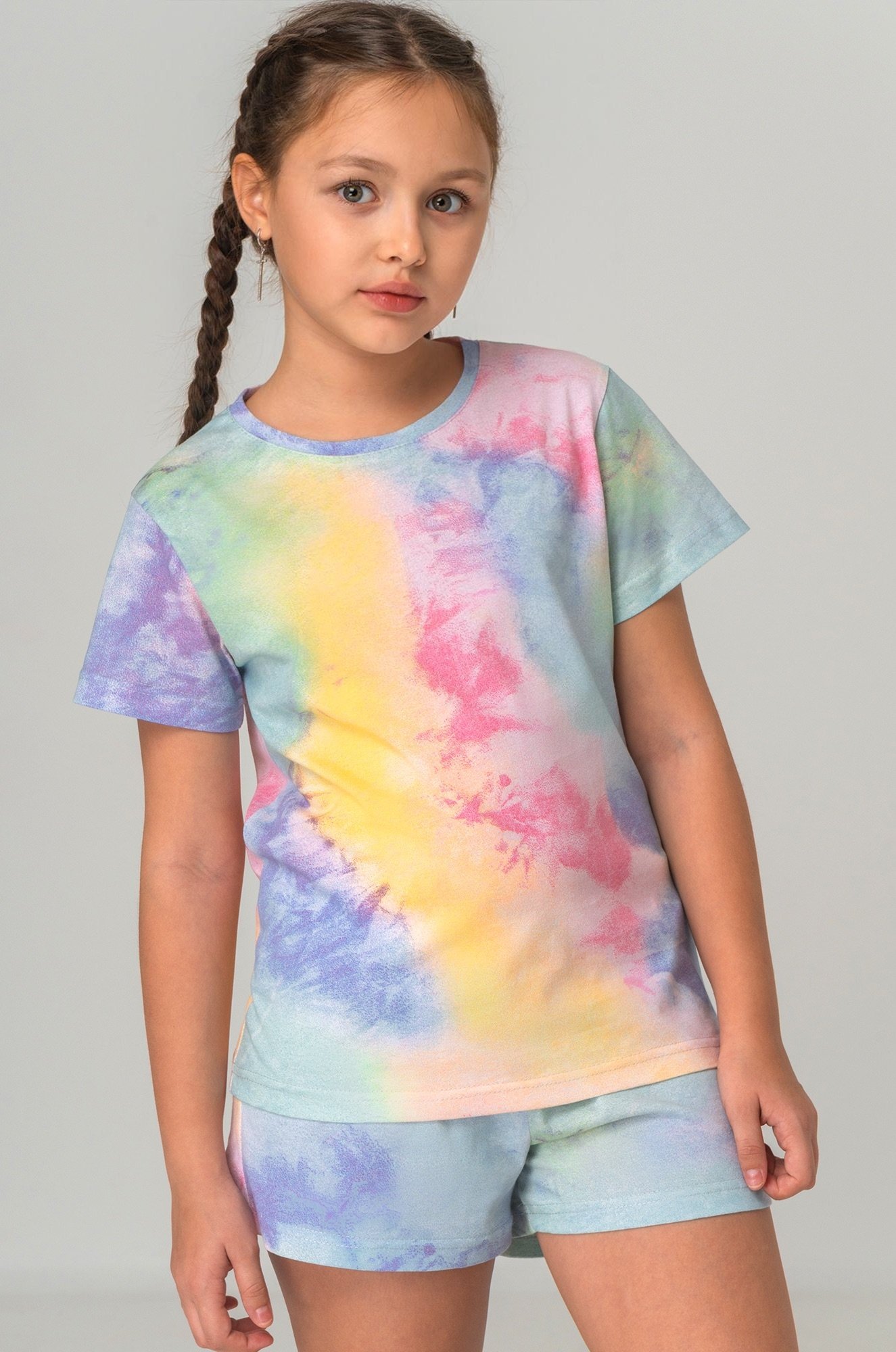 Детская пижама для девочек и девочек-подростков выполнена из натурального 100% хлопка. Прямой крой футболки, мягкая горловина, эластичная резинка шортиков – каждая деталь создана для комфорта ребенка. Благодаря милому принту Тай-дай пижама для детей станет любимой деталью домашнего отдыха!