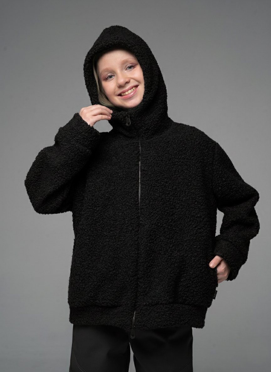 Плюшевая толстовка из шерпа черного цвета для девочкис длинными рукавами и капюшоном от российского производителя "Looklie" - стильная уютная вещь гардероба для каждой девочки. Кофта тедди с боковыми карманами выполнена из шерпы премиального качества. Детская толстовка свободного силуэта очень мягкая, теплая и приятная к телу. Трендовая кофта для девочки имеет объмные рукава и двойной капюшон . Толстовка тедди для девочки — тренд 2025. Застежка молния позволяет легко надевать и снимать кофту, а также регулировать температуру внутри. Карманы добавляют удобство и функциональность в эту толстовку. Кофта детская плюшевая идеально подходит для прогулок, отдыха и повседневной носки. Качество ткани, а также бережный уход (рекомендована бережная стирка при температуре до 30 градусов) обеспечивает длительный срок службы кофты, материал не растягивается и не выцветает.