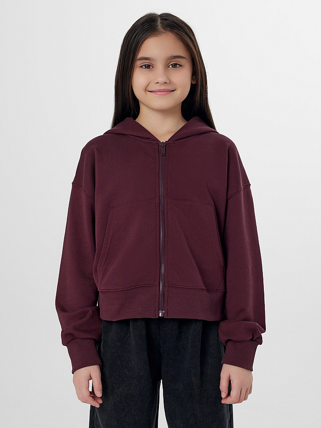 Толстовка для девочек бордовая на молнии