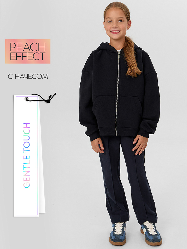 Толстовка подходит для прогулок, школы или отдыха. Универсальный черный цвет сочетается с любым низом — джинсами, леггинсами или спортивными штанами.