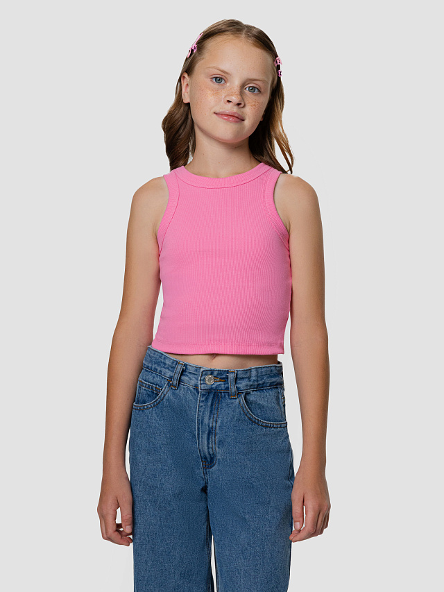 Топ из рибаны для девочек — это комфортная и стильная базовая модель, подходящая для повседневного гардероба. Облегающий силуэт мягко повторяет форму тела, не сковывая движений, а длина ниже уровня талии позволяет сочетать его как с джинсами, так и с легинсами или юбками. Круглая горловина оформлена широкой бейкой из основного материала, так же аккуратно обработаны проймы, что придает изделию цельный и аккуратный вид. Низ топа прошит в подгибку — это делает модель более устойчивой к износу и сохраняет ее форму после стирок. Такая вещь легко вписывается в школьный образ, подходит для прогулок и домашнего отдыха.