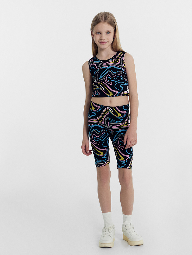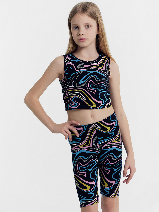 Топ для девочек в черном цвете с принтом "линиии"