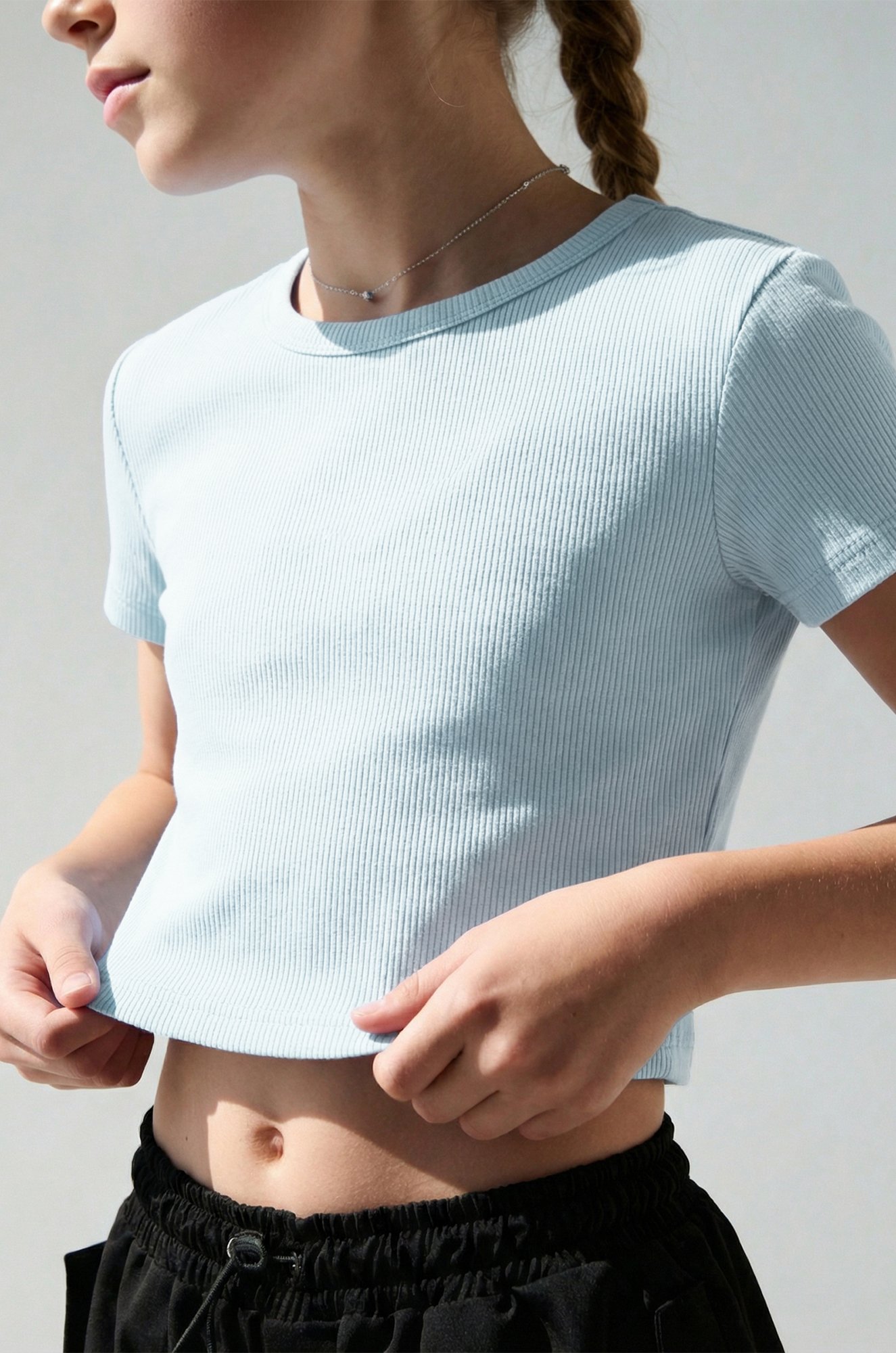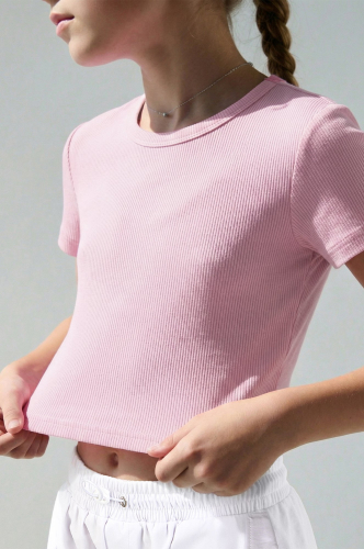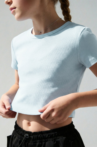 Детская футболка топ в рубчик для девочек — стильное сочетание комфорта и лаконичности. Облегающая футболка мягко повторяет фигуру и подходит для повседневных образов. Укороченная футболка выполнена из кашкорсе — это плотный трикотаж с характерной рубчатой текстурой.