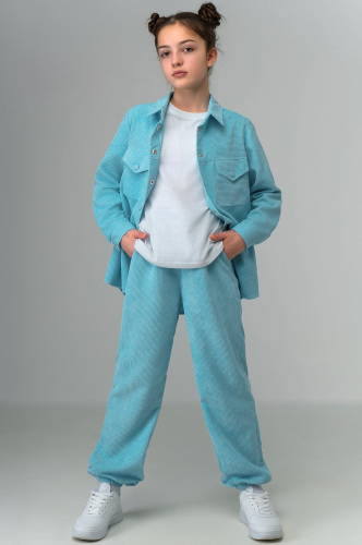 Вельветовый детский костюм с брюками — настоящий хит для девочек, которые любят стиль и комфорт! В наборе рубашка с отложным воротником и штаны с карманами.