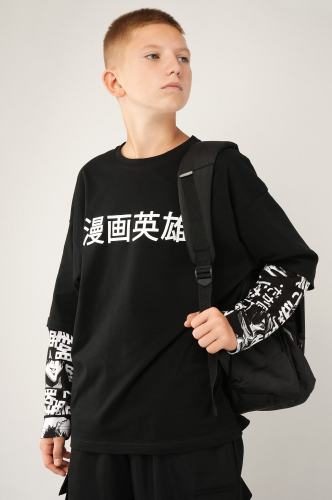 Черный лонгслив с винтажным вареным эф..показатьфектом для мальчиков и мальчиков подростков — выбор для тех, кто ценит свободу и уличную эстетику.