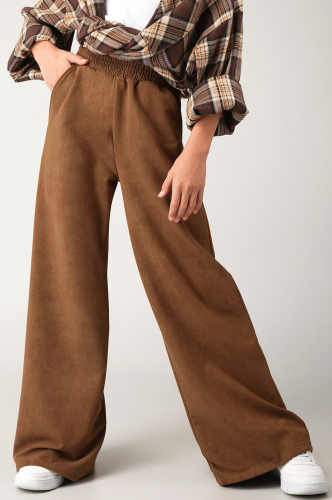 Детские брюки с эффектом варёнка для девочки подростка добавят образу элегантности и свободы. Мягкий хлопковый трикотаж с потертой фактурой добавляет образу оригинальности. Брюки карамельного цвета станут стильным акцентом.