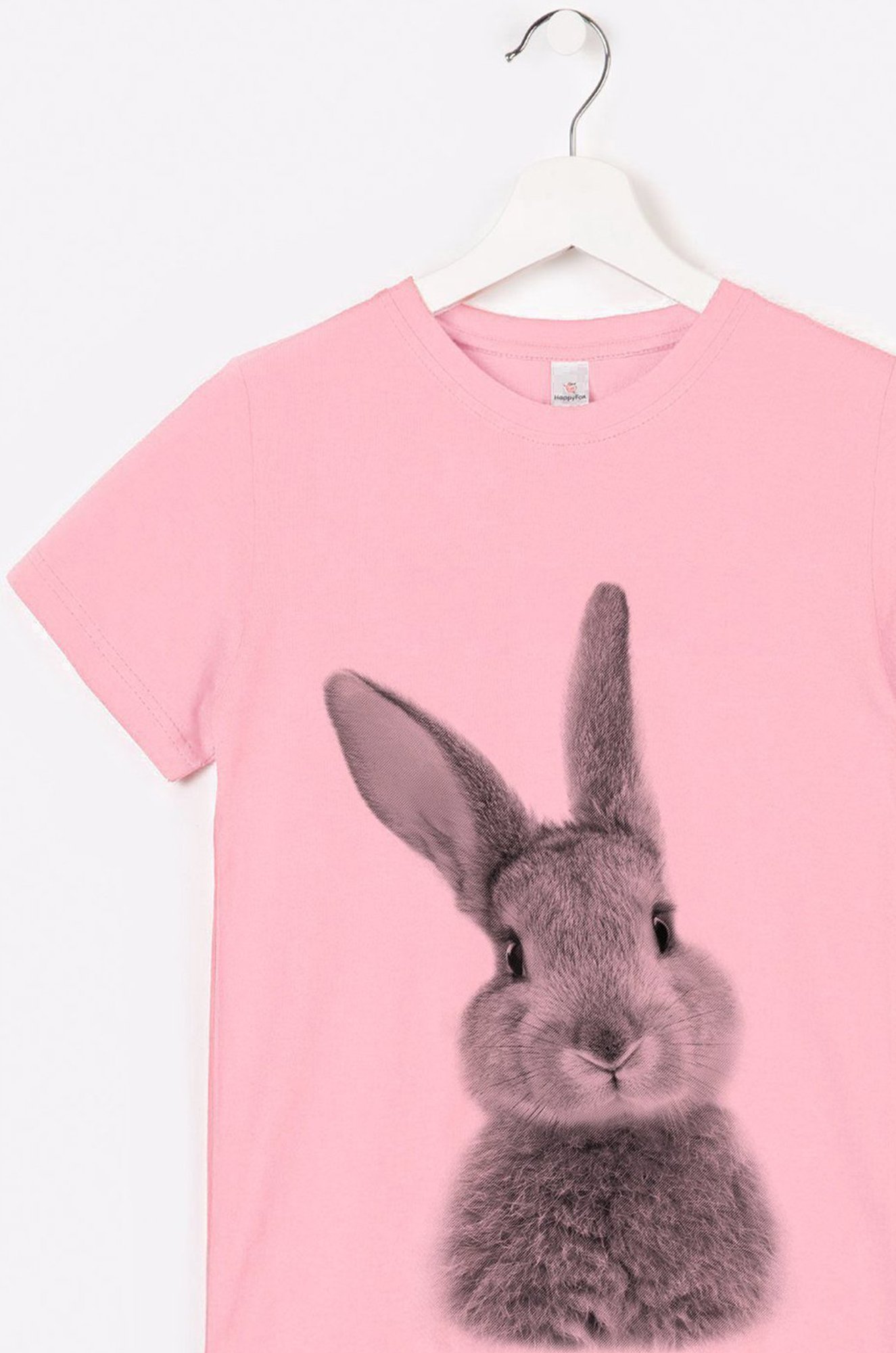 Детская футболка с принтом Зайчик для девочки и девочки-подростка выполнена из 100% хлопка. Мягкий трикотаж кулирная гладь приятен к телу. Футболку можно носить даже в жаркие летние дни. Прямой крой подарит свободную посадку, эластичная горловина аккуратно облегает шею.