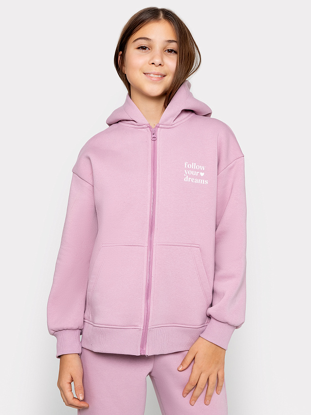 Стильный и удобный детский жакет для девочек свободного силуэта с капюшоном. Капюшон на подкладке из основного полотна. Рукава втачные, линия плеча спущена. Притачные манжеты по низу рукавов и пояс из рибаны. Спереди застежка молния, карман кенгуру. Комфортная модель для повседневной носки в школу, на физкультуру, прогулки с друзьями. Широкий цветовой ряд. Рекомендуем!