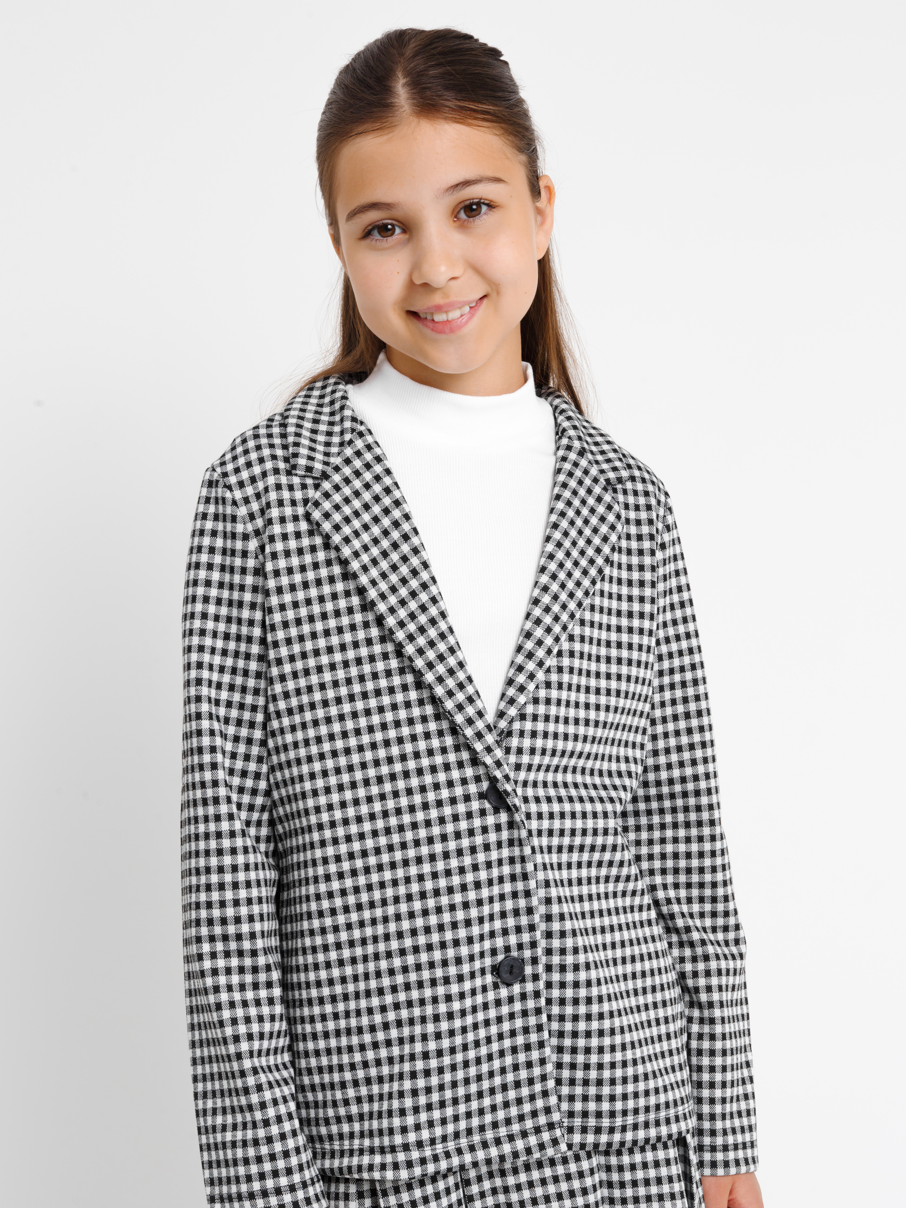 Классический детский жакет прямого силуэта представляет собой идеальное решение для девочек. Модель в официально-деловом стиле. Выполнена из высококачественных материалов, которые обеспечивают долговечность изделия. Изделие не сковывает движений, благодаря чему ваша девочка будет чувствовать себя комфортно и свободно в течение всего дня в школе. Рукава длинные, воротник отложной. Это придает элегантность и создает сдержанный образ. Спереди застегивается на две пуговицы, которые добавляют удобства. Благодаря этому жакету вы сможете создать безупречный аутфит для школы или других мероприятий. Отличный выбор для учениц, которые хотят выглядеть стильно и аккуратно в школе!