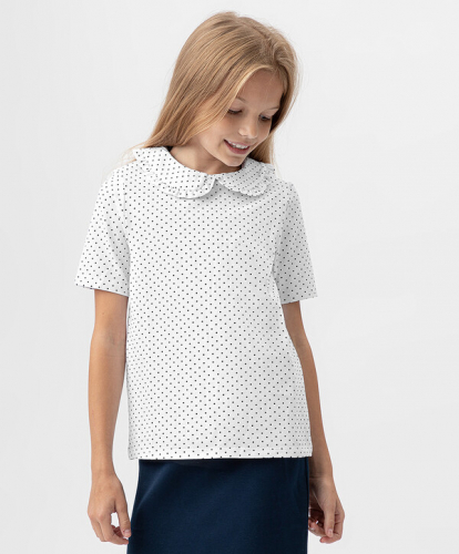 цветБелый100% хлопок Хлопок Блузка трикотажная школьная белая Button Blue