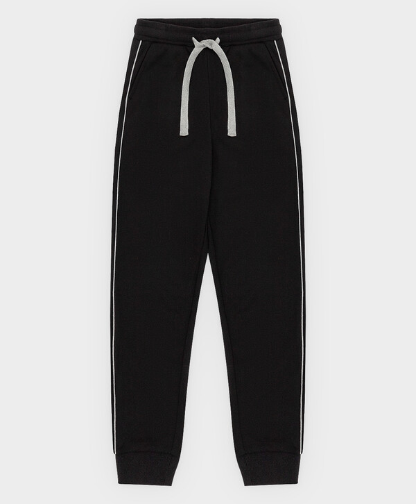 450 р. 900 р. Брюки из трикотажа с лампасами и манжетами черные Button Blue