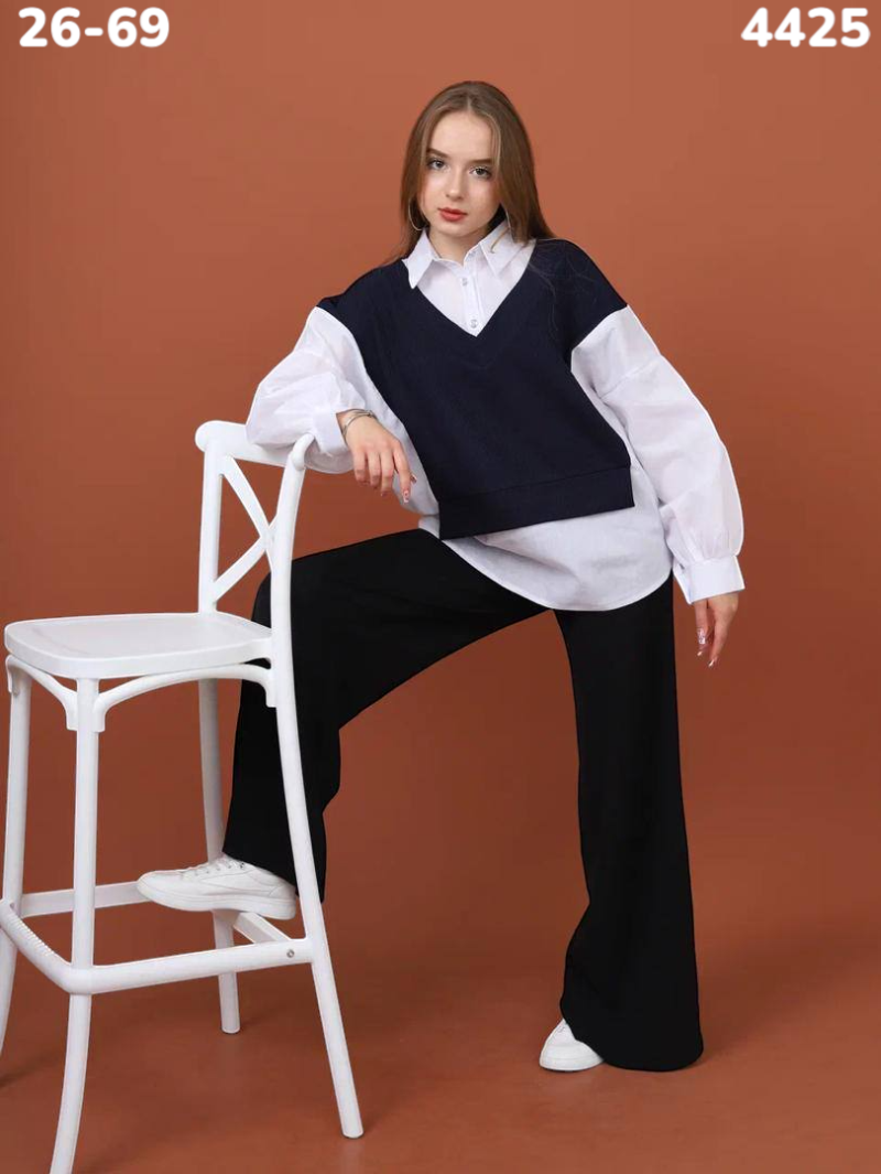 Школьный джемпер-обманка для девочки.