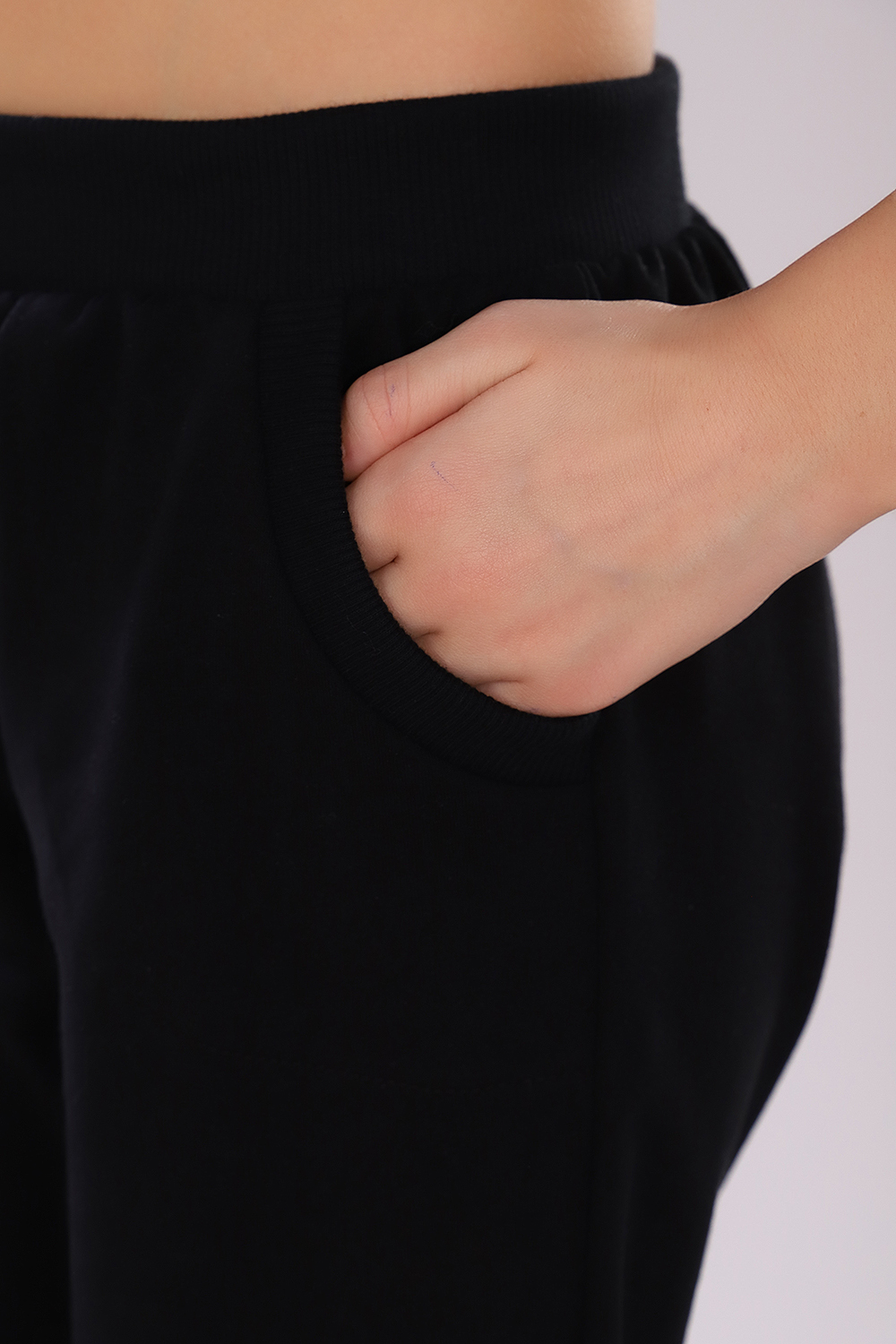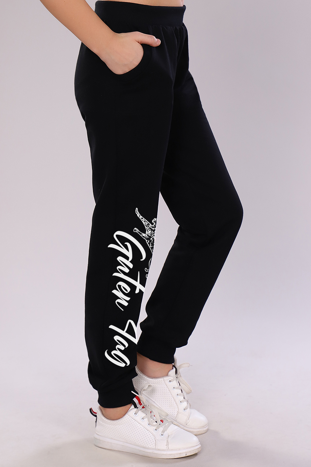 Брюки детские с манжетами (серия фэмили лук). Данная модель выполнена из трикотажного полотна футер 2-х нитка, манжета, пояс и вход в карман выполнены из эластичного трикотажного полотна кашкорсе. На передней половинке присутствует принт. Отличная модель для прогулок и повседневной носки. Такая же модель 15244 может порадовать не только вашу дочь, но и вас Цвет: черный; Материал: футер 2-х нитка;футер 2-х нитка; Состав: хлопок 70%, п/э 30%.