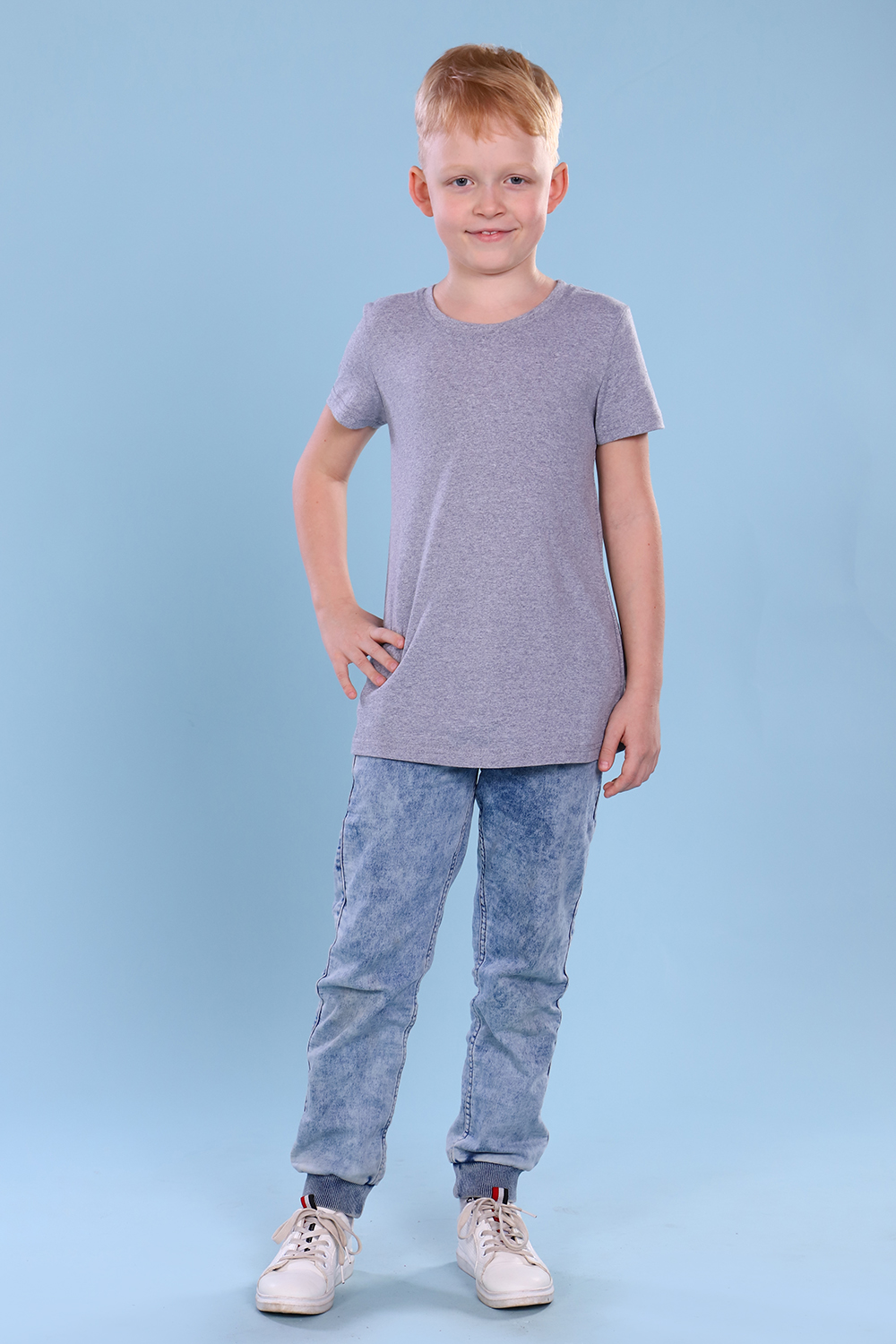 Комфортная детская футболка прямого кроя из 100% хлопка. Модель для повседневной носки из натуральной дышащей ткани. Идеально подходит для использования в дошкольных и школьных учреждениях на уроках физкультуры, танцев и хореографии. Цвет: серый; Материал: кулирка;кулирка; Состав: 100% хлопок.