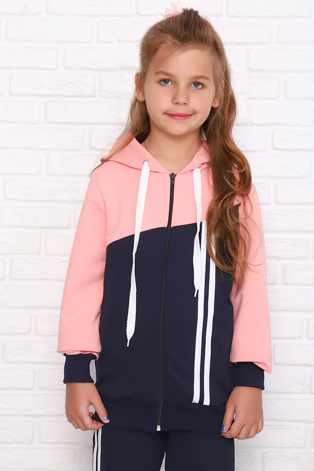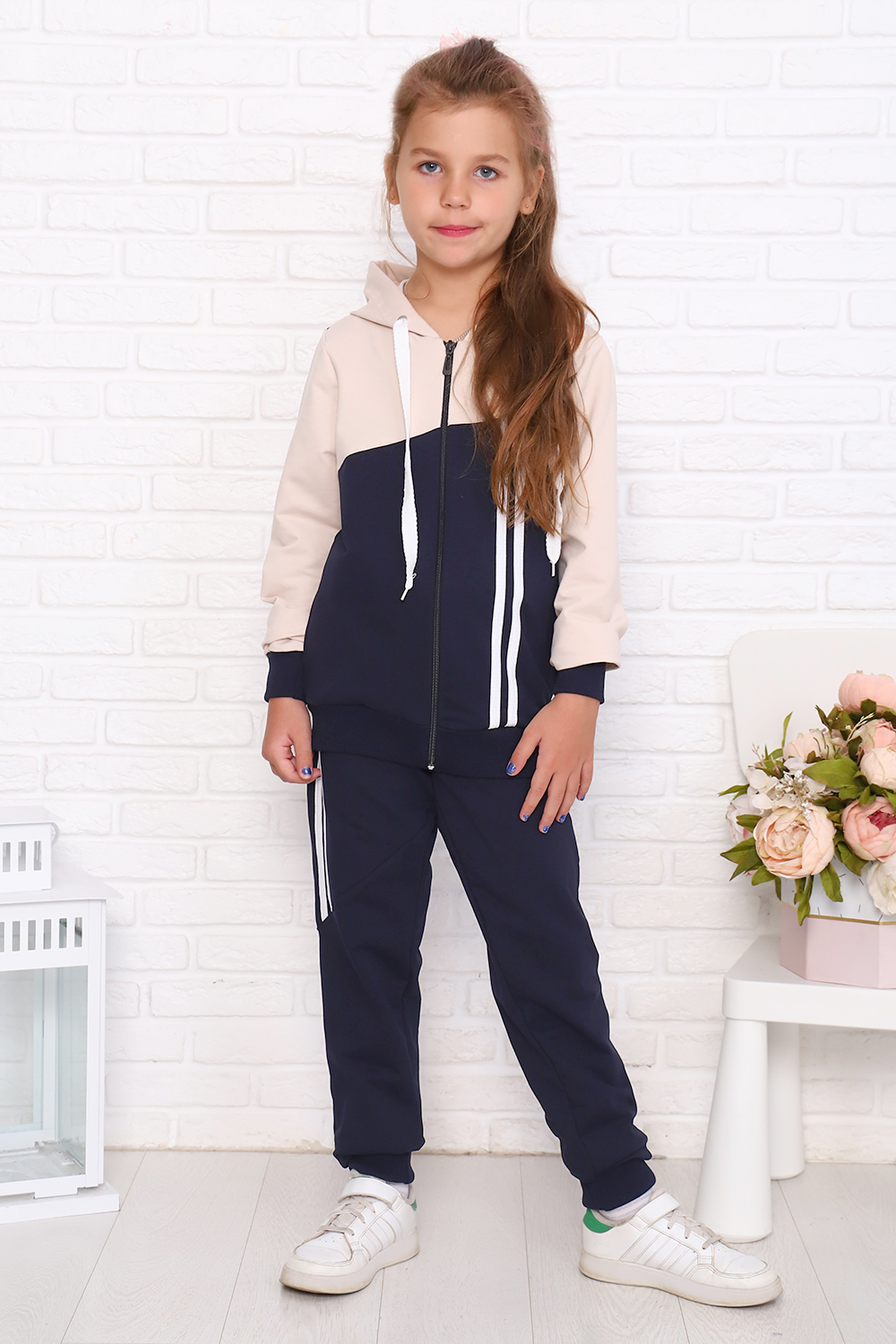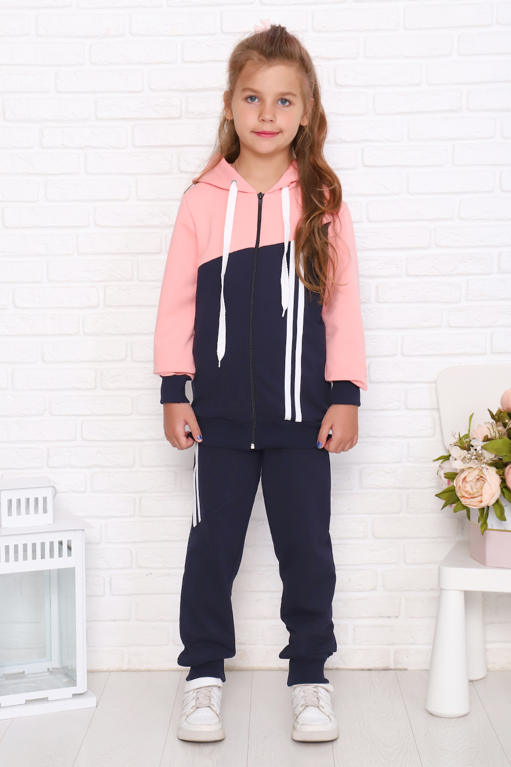 Костюм из футера 2 -х нитки подростковый на девочек. Кофта с капюшоном, рукав длинный, по переду отделка из футера другого цвета с лампасами. Брюки длинные на манжете с лампасами. Цвет: бежевый;розовый; Материал: футер 2-х нитка;футер 2-х нитка; Состав: 70% хлопок, 24% п\э, 6% лайкра.