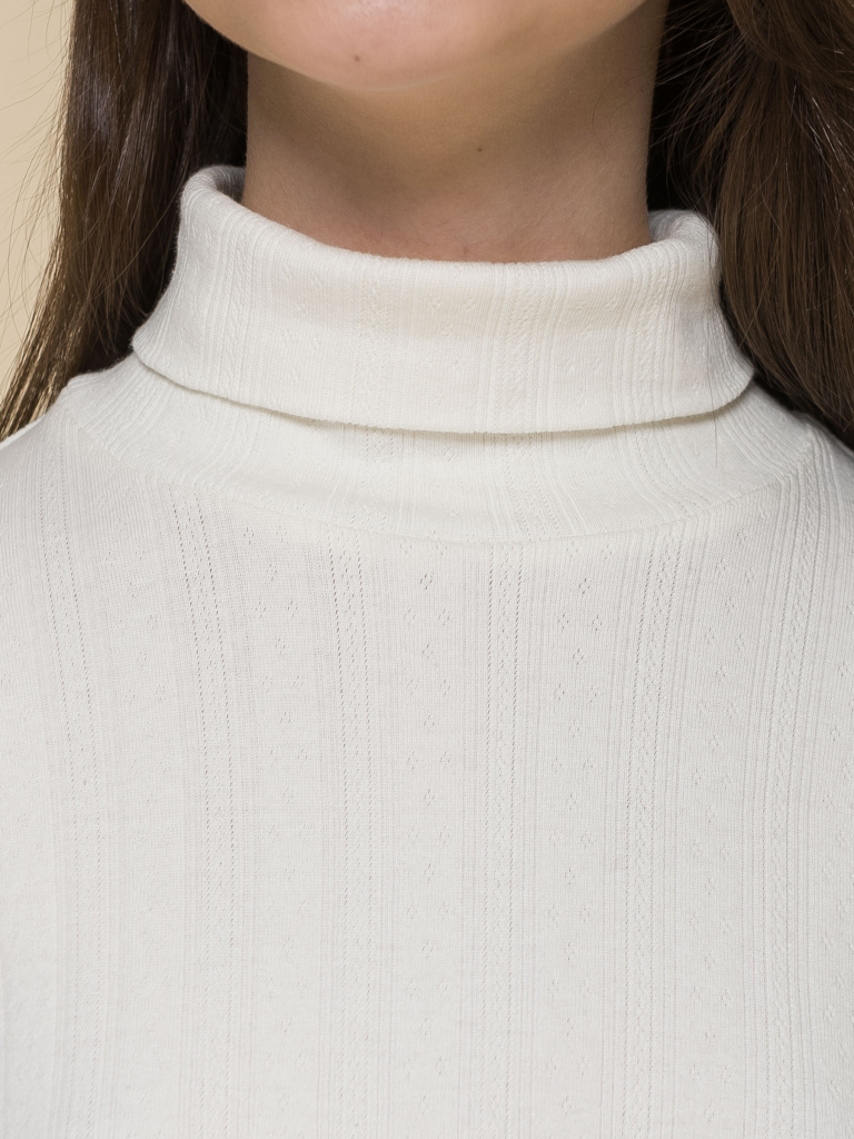 Водолазка из ажурного трикотажа для девочки. В составе ткани преобладает хлопок — изделие мягкое, воздухопроницаемое и комфортное для ребёнка. Благодаря эластану водолазка тянется и при этом сохраняет форму даже после многочисленных стирок. В джемпере комфортно в течение всего дня, ничего не давит, не колет, не сковывает движения. Ажурная фактура деликатно украшает эту модель лаконичного дизайна, делает её нежной и женственной. Воротник-гольф: высокий, мягкий, плотно прилегает к шее. Красивый и практичный вариант для школьной формы. Отлично сочетается как юбками, сарафанами, так и с брюками. Состав: 95%хлопок 5%эластан Возрастная группа: Teenager Сезон: Осень Год: 2023 Пол: Девочки