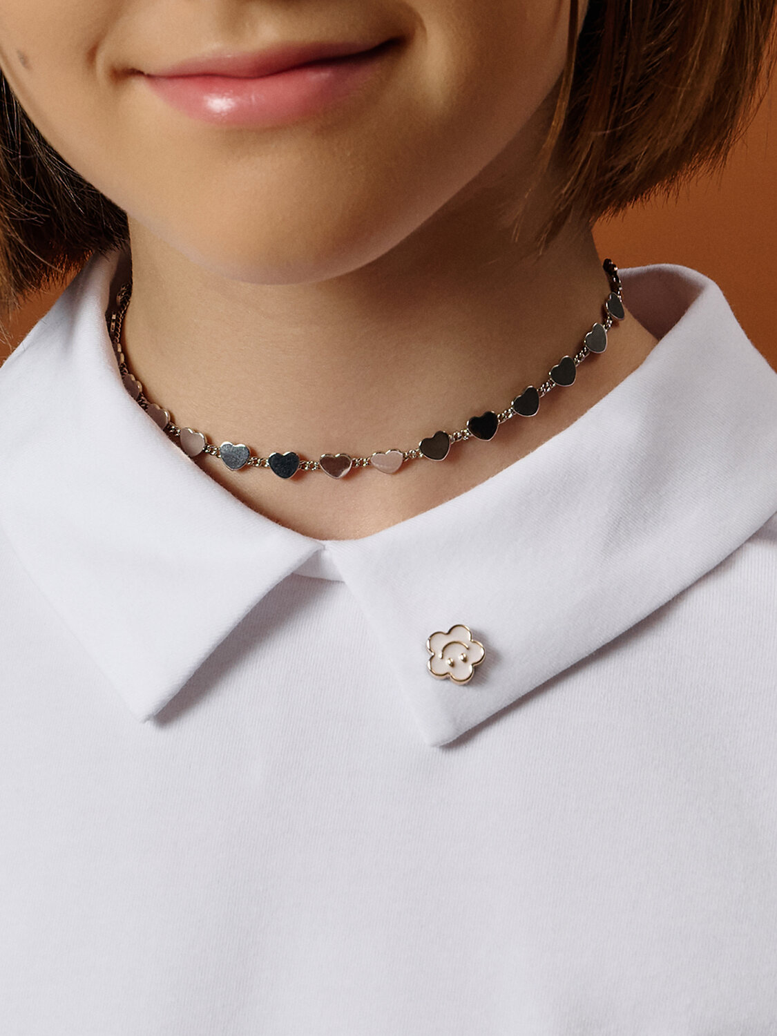 Школьная блузка для девочки с кружевными рукавами, воротником и съёмным пином — комфорт и стиль на каждый день Эта трикотажная блузка для школы сочетает в себе удобство, аккуратный внешний вид и оригинальные детали. Модель выполнена из мягкого хлопкового материала с добавлением эластана — ткань дышит, приятно ощущается на теле и не сковывает движений. Полуприлегающий силуэт и эластичная структура делают блузку комфортной для повседневной носки в школе. Длинные кружевные рукава с гофрированным эффектом придают образу лёгкость и индивидуальность. Сборка по верху и низу добавляет объёма, а аккуратная отделка манжет тканью в тон делает рукава удобными и не раздражающими кожу. Отложной воротничок добавляет строгости и хорошо смотрится под сарафан, пиджак или жилет. Сзади — разрез и застёжка на две пуговицы с мягкими резиновыми петельками — легко надевать и снимать, особенно для младших школьниц. Изюминка модели — съёмный пин в виде весёлого цветочка с глазками и улыбкой. Он добавляет игривое настроение и делает образ менее формальным. Такой аксессуар понравится детям, ведь его можно снять или прикрепить по настроению. Это делает блузку не только школьной, но и подходящей для прогулок, походов в кружки или встреч с друзьями. Идеальна для 1–9 классов, подходит к любой школьной форме: юбкам, брюкам, сарафанам. Используйте таблицу размеров на фотографии, чтобы выбрать подходящий размер. Обратите внимание, что цвет товара на экране вашего устройства может отличаться от реального.