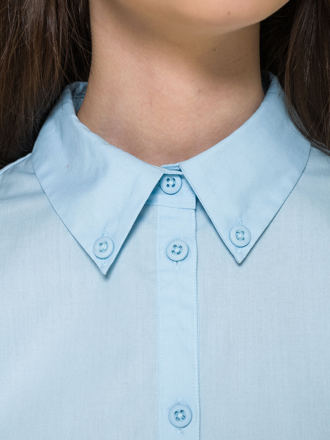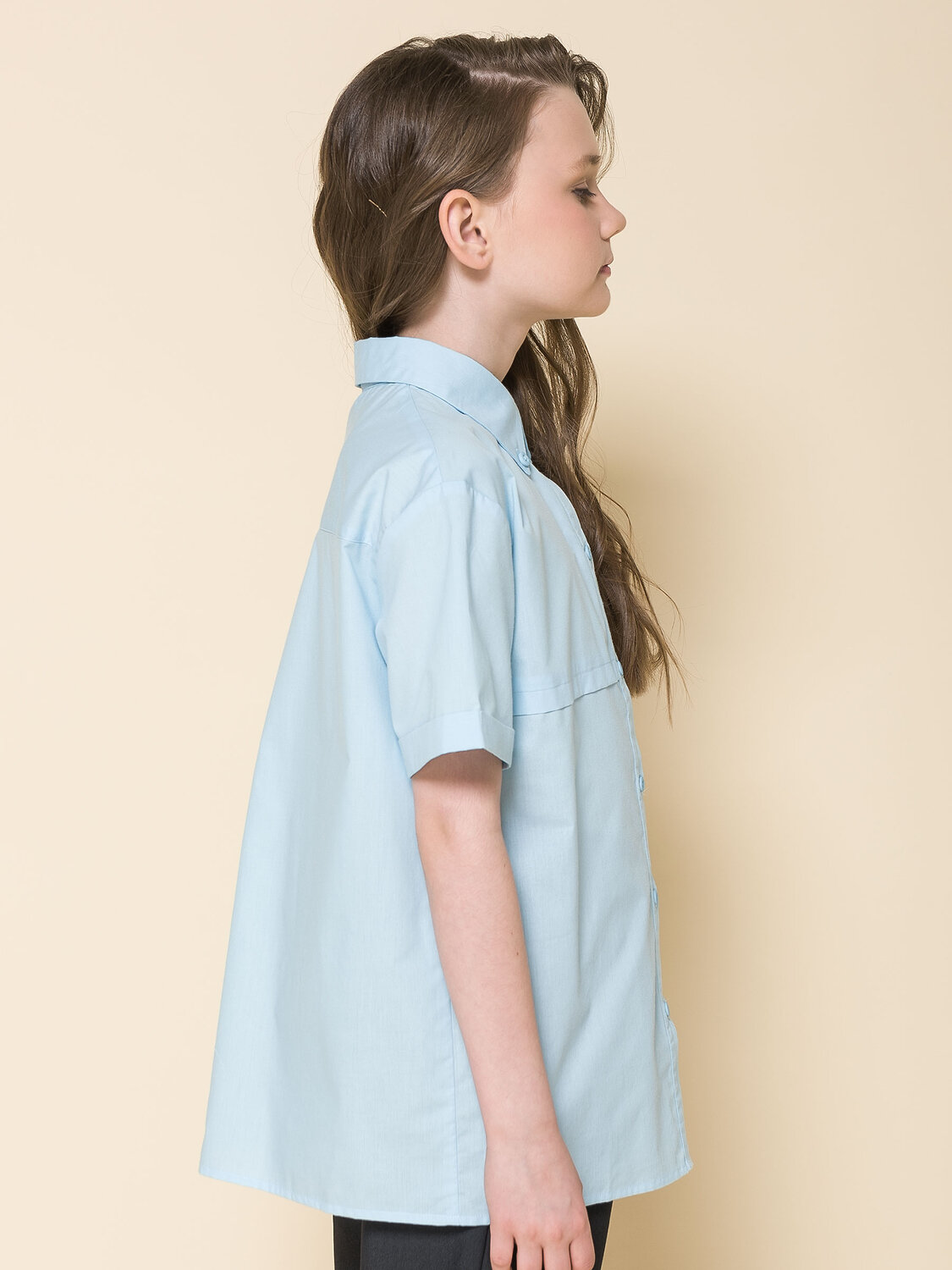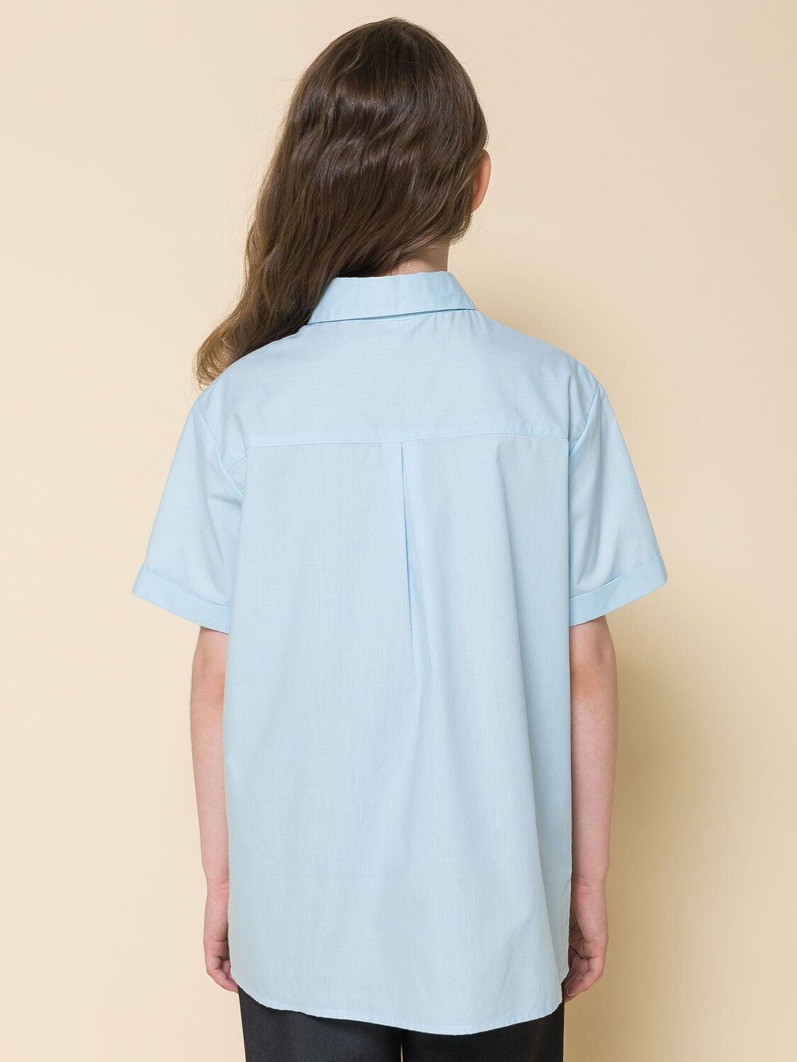 Школьная блузка прямого силуэта для девочки. Преобладающий в составе ткани хлопок делает эту модель мягкой, дышащей и комфортной для ребёнка. Благодаря полиэстеру изделие сохраняет форму и превосходный внешний вид. На спинке кокетка с защипом - свобода движения, комфорт в течение дня. По переду под кокеткой имитация кармана в виде декоративного клапана – актуально и стильно. Воротник украшают декоративные пуговицы — изюминка модели. Рукав с отворотом - оригинально. Практичная и универсальная модель благодаря лаконичному дизайну великолепно сочетается с различными брюками и юбками. Отличный вариант детской блузки для школы.