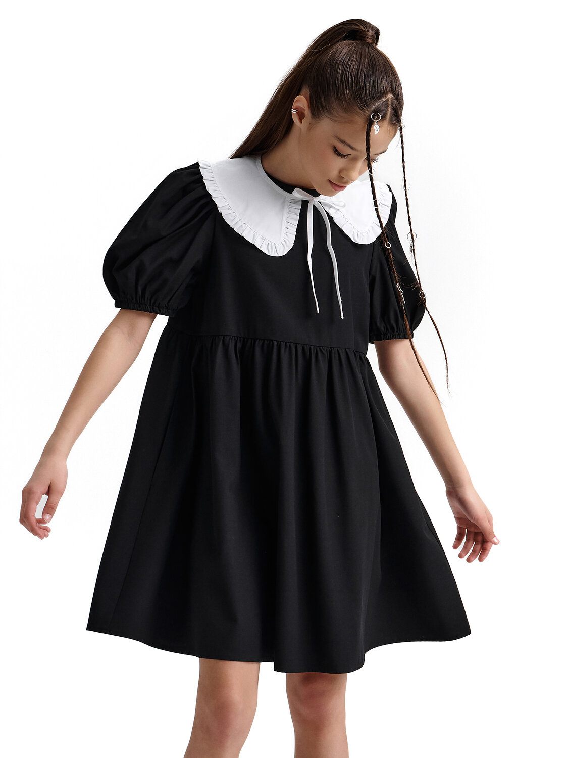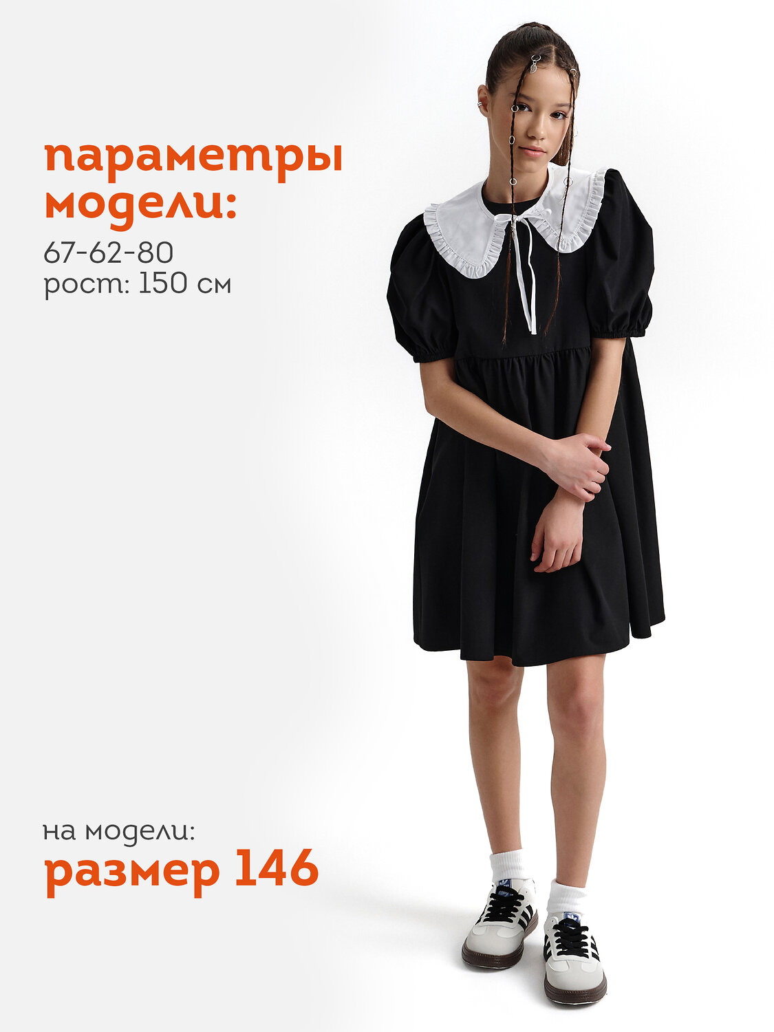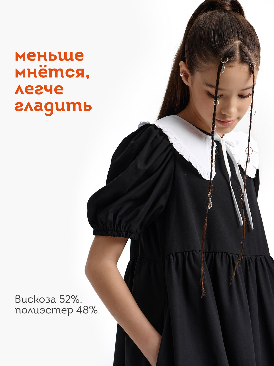 Школьное платье в стиле беби-долл — удобно на учёбу, красиво на каждый день. Свободный силуэт, комфортная посадка и практичные детали — ребёнку будет удобно с утра до вечера, а образ останется аккуратным и стильным. Это платье с завышенной линией талии, свободной юбкой и объёмными рукавами. Ничего не сковывает, ничего не давит — отлично подходит для школы: удобно сидеть, двигаться, писать, носить в жару и с колготками в прохладу. Смесовая ткань — практичный выбор: не мнётся, легко стирается, не требует глажки. Рукава-фонарики с мягкой резинкой — подойдут на любую руку, не сдавливают. Юбка с объёмной сборкой и карманами — красиво и удобно. Застёжка на пуговицу — самостоятельно надевать просто. Съёмный воротник из контрастной ткани — два образа в одном: со школой — нарядно и по форме, без воротника — можно носить как повседневное платье после уроков или в выходные. Рюша по краю воротника добавляет мягкости и делает образ более выразительным. Выбирайте нужный размер по таблице размеров на фото. Цвет товара на экране вашего устройства может отличаться от цвета изделия вживую.