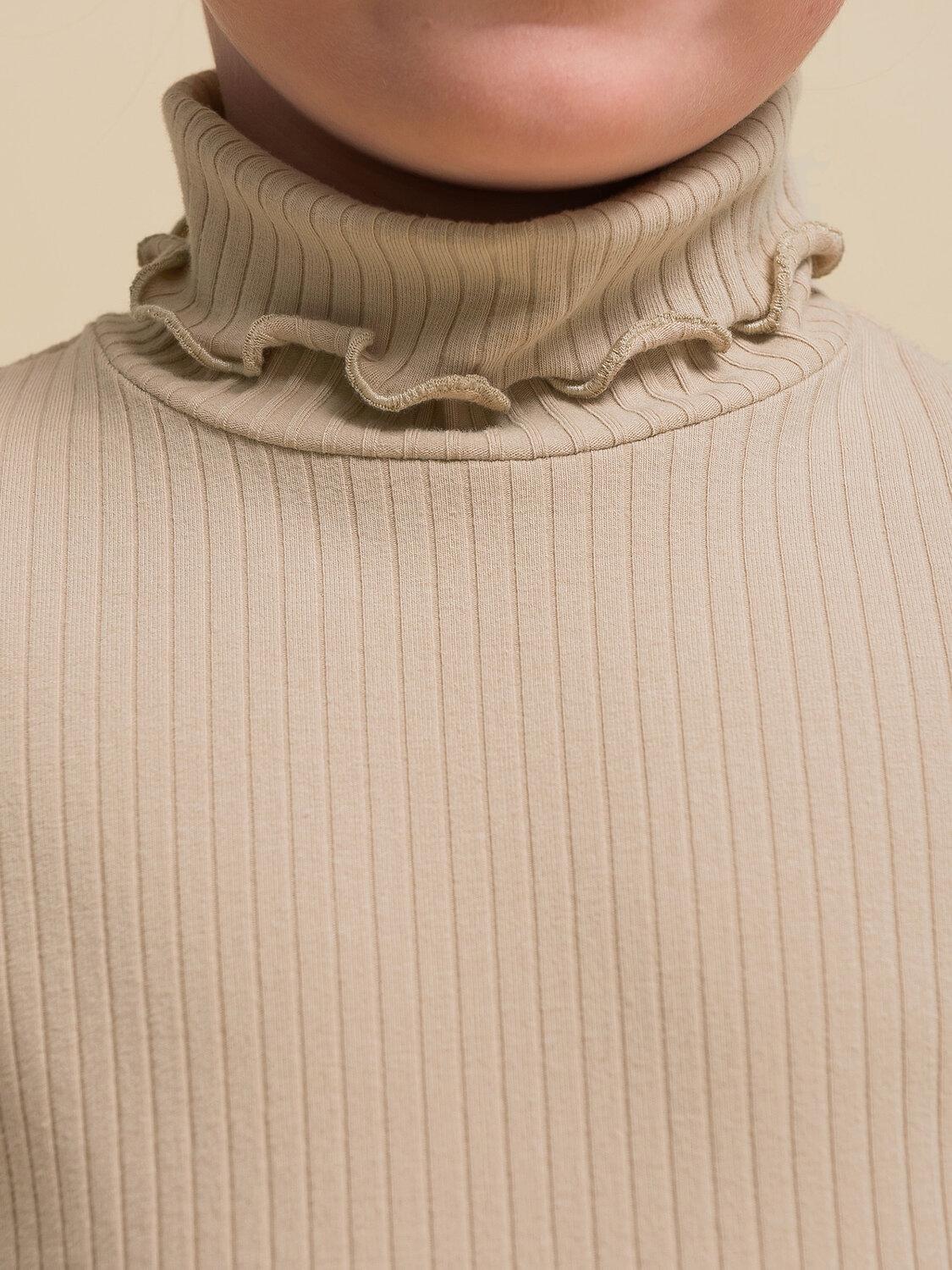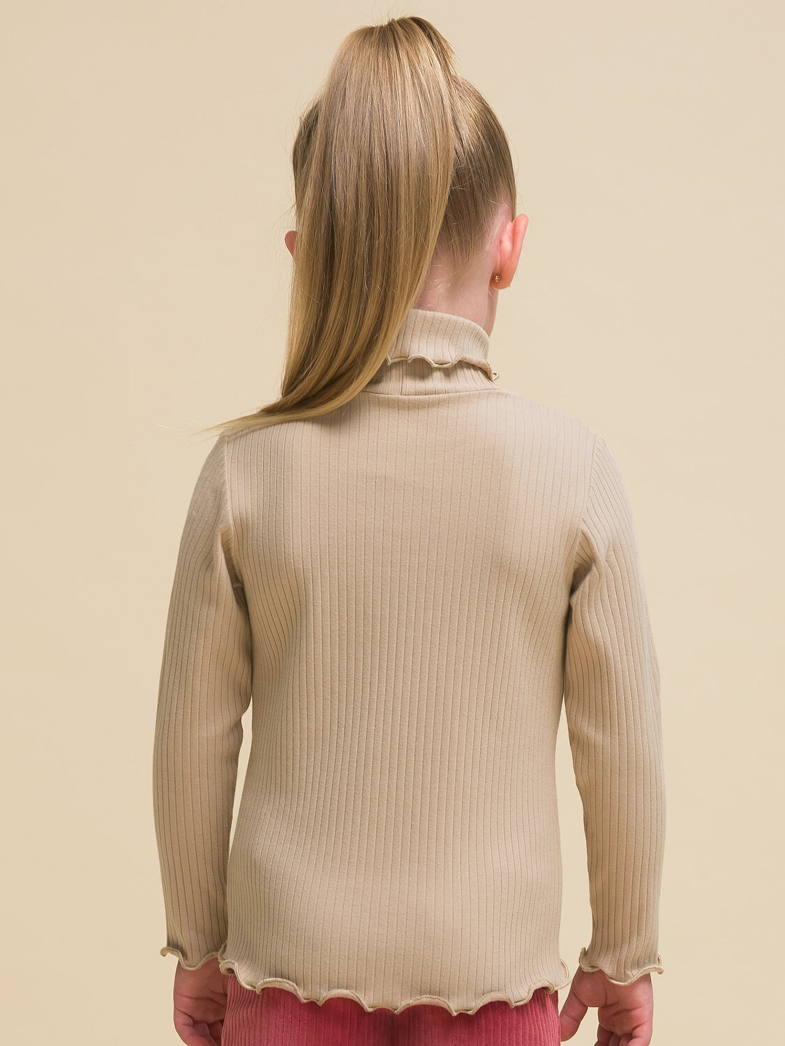 Водолазка в рубчик для девочки. Джемперы из ткани в рубчик (кашкорсе) — один из модных трендов. Водолазка умеренного объёма со спущенным плечом подарит ребёнку комфорт и не будет стеснять его движений. Водолазка-лапша с высоким воротником-стойкой защищает шею от холода и ветра — можно не надевать дополнительно шарф. Джемпер украшает декоративная закрутка по воротнику и низу рукавов. Модель однотонная, без принта. За джемпером просто ухаживать. В составе ткани преобладет высококачественный хлопок — водолазка притяна на ощупь и великолепно пропускает воздух, позволяя коже ребёнка дышать. Эластан помогает изделию сохранить первоначальную форму в течение длительного времени. Водолазка представлена в трёх трендовых цветах: бежевая водолазка (песочный оттенок), голубая и розовая (пудровый оттенок). Размерная линейка: 1 (86): 2 (92): 3 (98): 4 (104): 5 (110): 6 (116): 7 (122): 8 (128): 9 (134): 10 (140): 11 (146). Замечательная водолазка на девочку дошкольного и младшего школьного возраста, а также подростка. Подходит для детского сада, школы, отдыха, прогулок и дома. Водолазка детская идеальна для круглогодичного применения: летом, осенью, зимой, весной и демисезон. Водолазка с длинным рукавом легко комбинируется с различными брюками, юбками, сарафанами. Это великолепный подарок дочери, внучке или сестре на любой праздник или просто в качестве знака внимания и заботы.