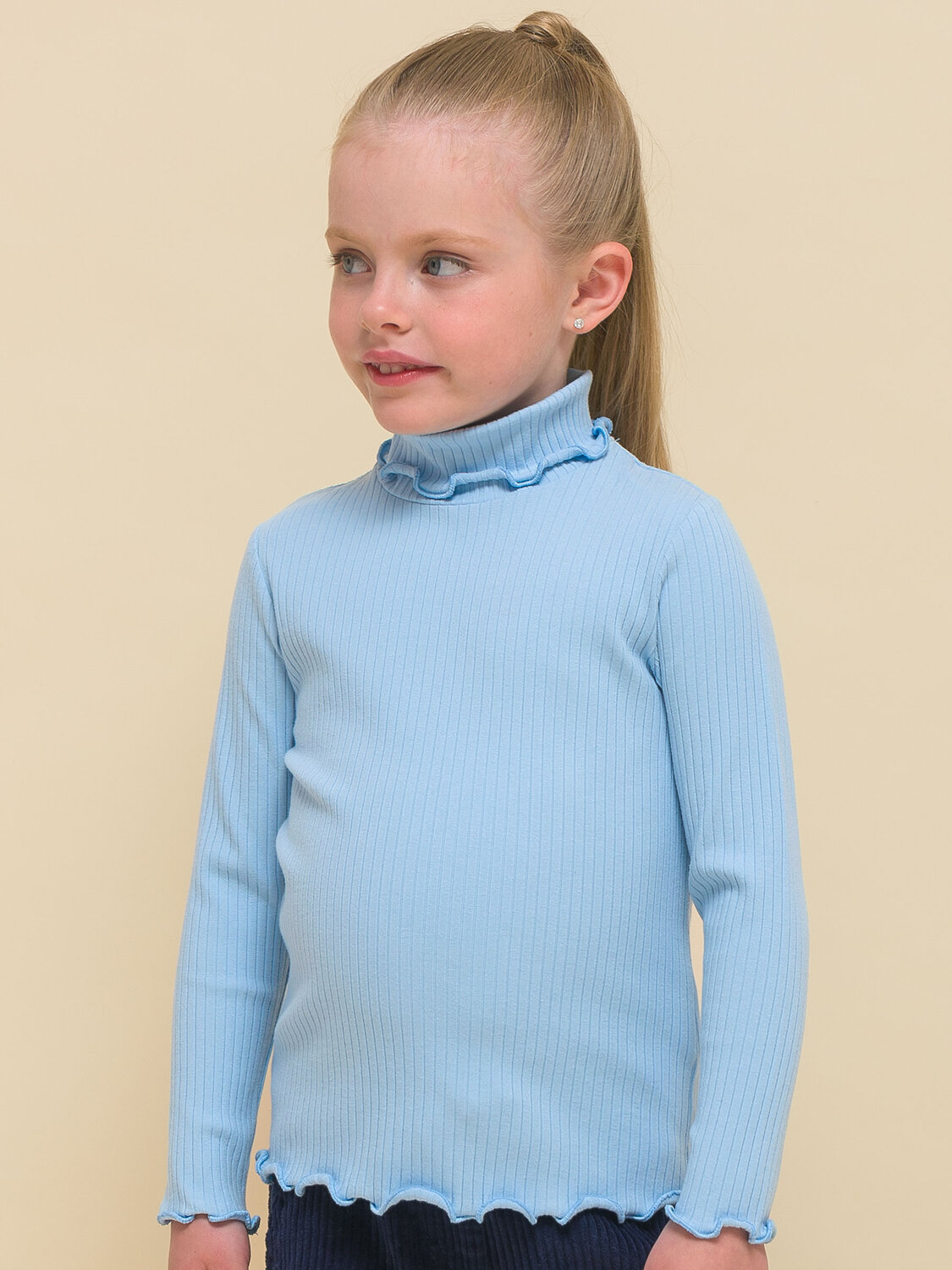 Водолазка в рубчик для девочки. Джемперы из ткани в рубчик (кашкорсе) — один из модных трендов. Водолазка умеренного объёма со спущенным плечом подарит ребёнку комфорт и не будет стеснять его движений. Водолазка-лапша с высоким воротником-стойкой защищает шею от холода и ветра — можно не надевать дополнительно шарф. Джемпер украшает декоративная закрутка по воротнику и низу рукавов. Модель однотонная, без принта. За джемпером просто ухаживать. В составе ткани преобладет высококачественный хлопок — водолазка притяна на ощупь и великолепно пропускает воздух, позволяя коже ребёнка дышать. Эластан помогает изделию сохранить первоначальную форму в течение длительного времени. Водолазка представлена в трёх трендовых цветах: бежевая водолазка (песочный оттенок), голубая и розовая (пудровый оттенок). Размерная линейка: 1 (86): 2 (92): 3 (98): 4 (104): 5 (110): 6 (116): 7 (122): 8 (128): 9 (134): 10 (140): 11 (146). Замечательная водолазка на девочку дошкольного и младшего школьного возраста, а также подростка. Подходит для детского сада, школы, отдыха, прогулок и дома. Водолазка детская идеальна для круглогодичного применения: летом, осенью, зимой, весной и демисезон. Водолазка с длинным рукавом легко комбинируется с различными брюками, юбками, сарафанами. Это великолепный подарок дочери, внучке или сестре на любой праздник или просто в качестве знака внимания и заботы.