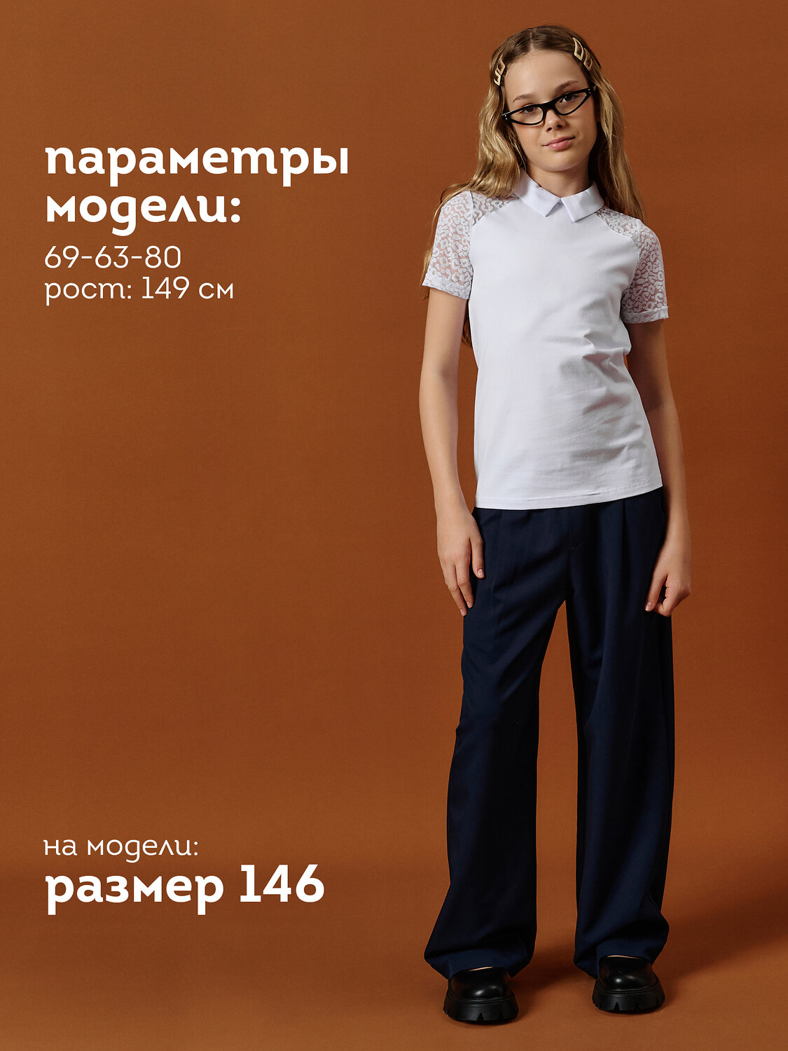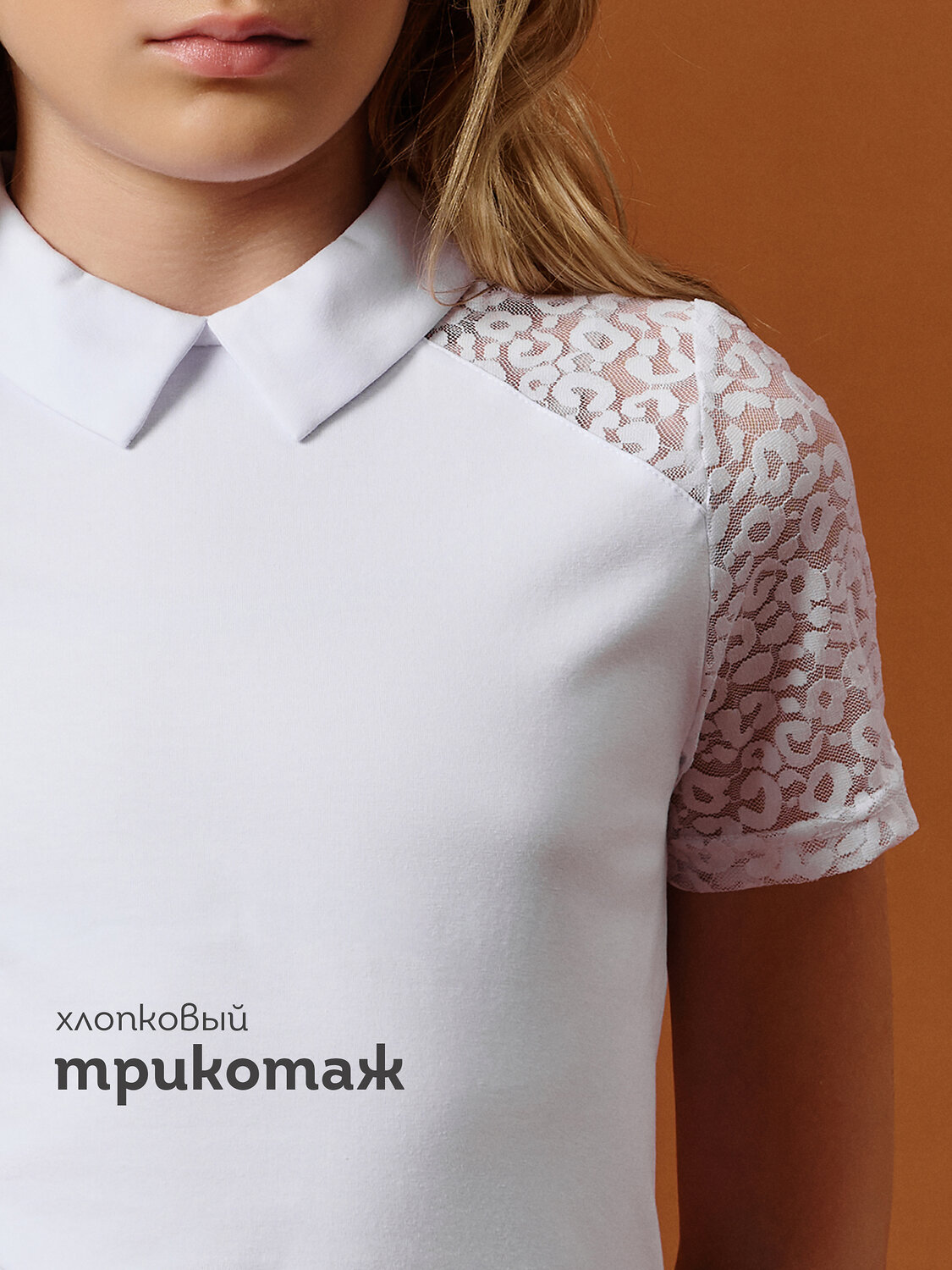 Ищете стильную и удобную блузку для школы, которая сочетает в себе комфорт и элегантность? Эта модель из мягкого эластичного хлопкового трикотажа — отличный выбор для вашей девочки. Наклонные кружевные вставки на плечах и облегающие рукава из нежного эластичного кружева придают блузке изящный и современный вид, при этом кружево мягкое и не раздражает кожу, поэтому ребёнку будет удобно в блузке целый день Воротник выполнен в стиле классической рубашки с цельной стойкой и аккуратными заострёнными концами из основного материала, что делает образ опрятным и подходит под школьные требования к форме. Для удобства надевания на спинке сделан небольшой аккуратный разрез, а застёжка на две пуговицы помогает легко надевать блузку через голову. Блузка отлично сочетается с юбками, брюками и сарафанами, подходит как для ежедневных занятий в школе, так и для торжественных мероприятий. Материал легко стирается и быстро сохнет, что позволяет экономить время на уходе и сохранять свежий вид даже после многократных стирок. Выбирая эту блузку, вы обеспечиваете своей дочери комфорт, удобство и стильный внешний вид — всё, что нужно для успешного и уверенного школьного дня! Используйте таблицу размеров на фотографии, чтобы выбрать подходящий размер. Обратите внимание, что цвет товара на экране вашего устройства может отличаться от реального.