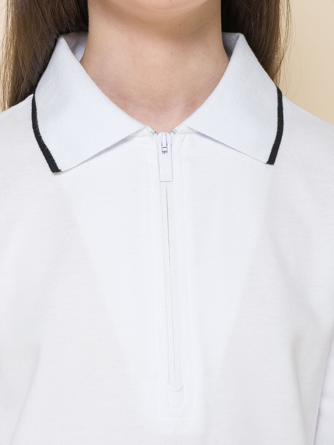 Джемпер из трикотажа пике для девочки. Приятный, плотный, мягкий материал из 100% хлопка. Почти не мнется, гигроскопичен, с хорошей воздухопроницаемостью, не требует сложного ухода. Центральная застёжка на модную короткую молнию из пластика — любой ребёнок сможет быстро надеть и снять изделие. Лаконичный дизайн позволяет сочетать лонгслив с различными брюками и юбками. Модный и практичный вариант школьной одежды для девочек.