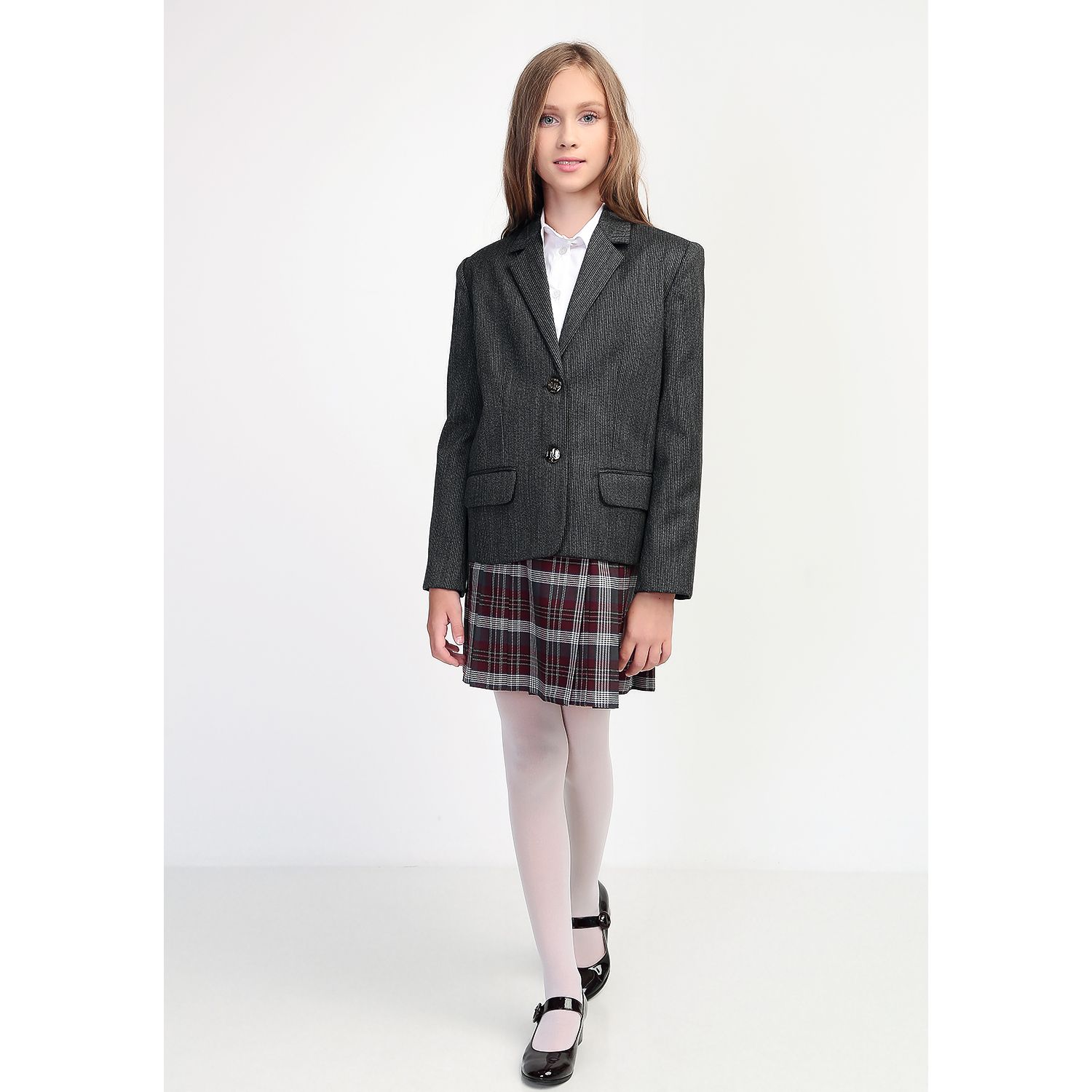 Серый школьный пиджак для девочки «Рябушка премиум»