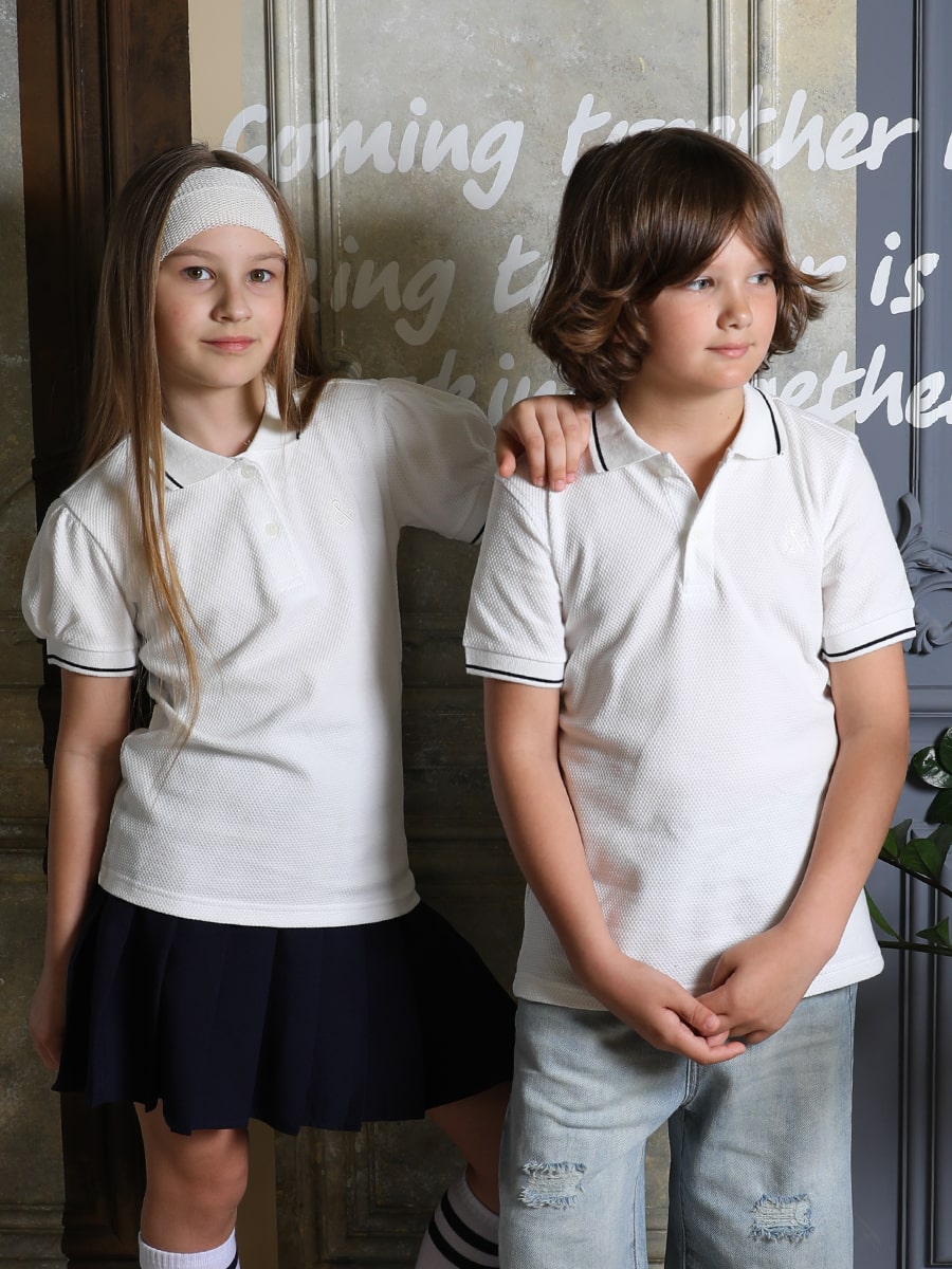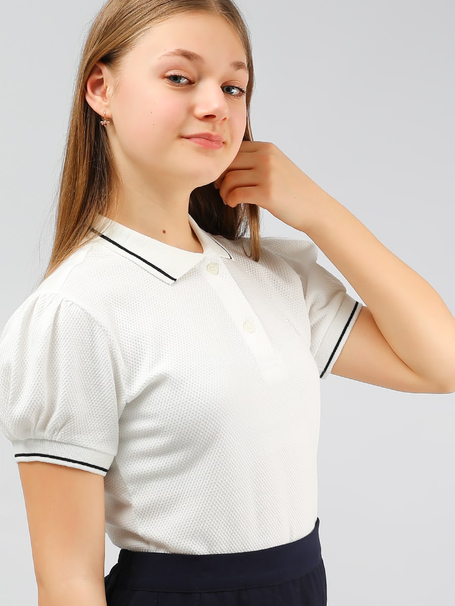 Батник с коротким рукавом, для девочки, СольПерец. Классическая модель выполнена из натурального, гигроскопичного и воздухопроницаемого материала-пике. Незаменимая вещь в гардеробе каждого школьника. Цвет: белый; Материал: трикотаж стрейч;трикотаж стрейч; Состав: 95% хлопок, 5% эластан.