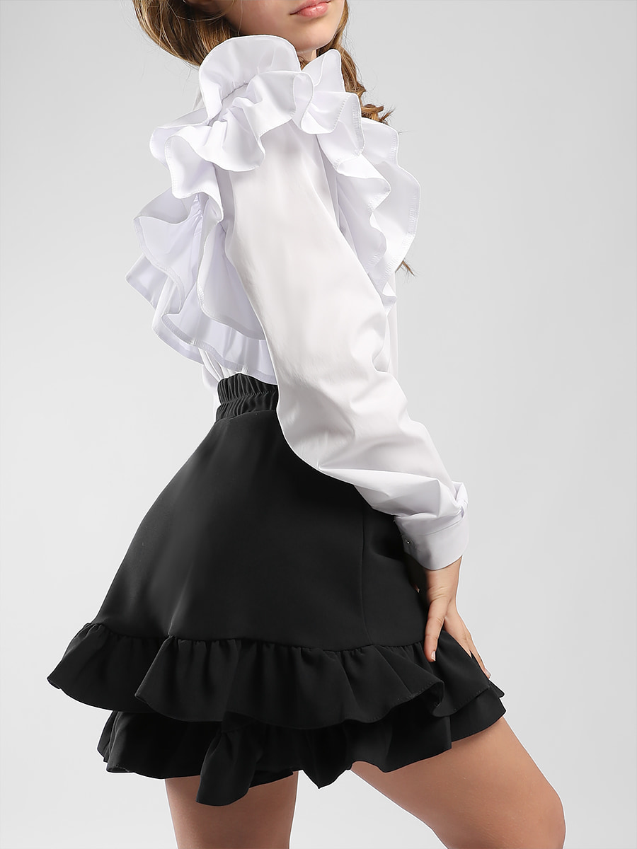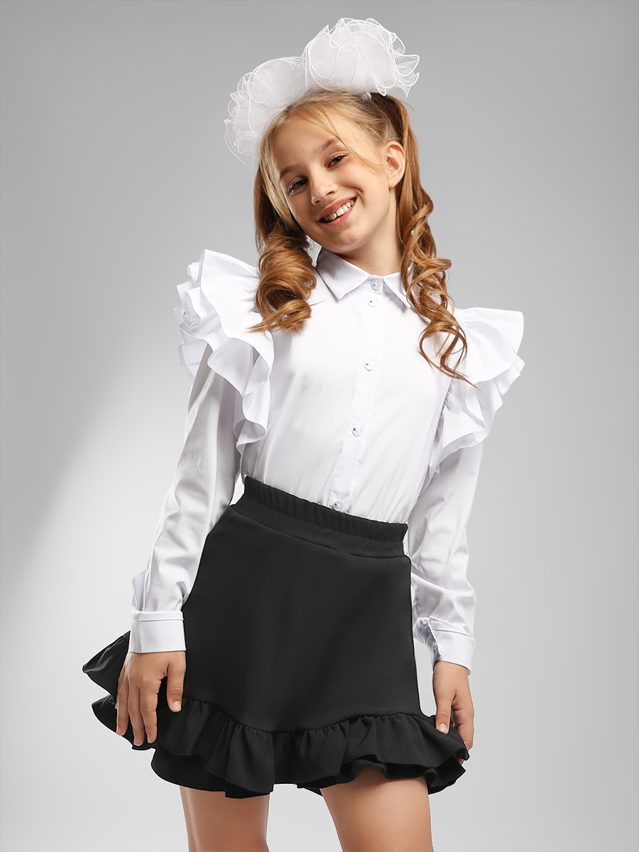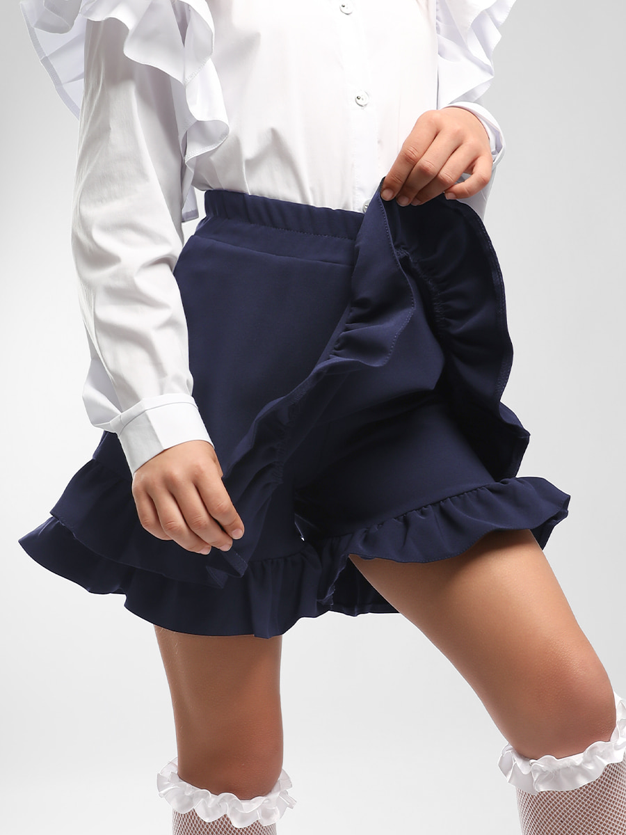 Юбка-шорты для девочки СольПерец выполнена из качественной костюмной ткани. Практичность модели обеспечивается продуманным дизайном: отсутствие молнии и карманов делает юбку-шорты удобной в носке, а эластичная резинка по талии обеспечивает комфортную посадку по фигуре. Декоративные рюши добавляет изделию нарядности и женственности. Эта модель станет незаменимой вещью в гардеробе юной модницы, позволяя создавать стильные и комфортные образы для любой ситуации. Цвет: темно-синий;черный; Материал: костюмная ткань; Состав: 61% полиэстер, 35% вискоза, 4% эластан.