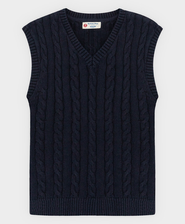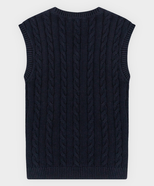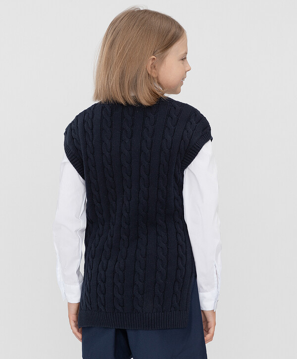 Жилет - основа базового гардероба школьника. Удобный крой и материал - все, что нужно для идеального ежедневого образа. Вязка косами добавляет оригинальности данной модели.