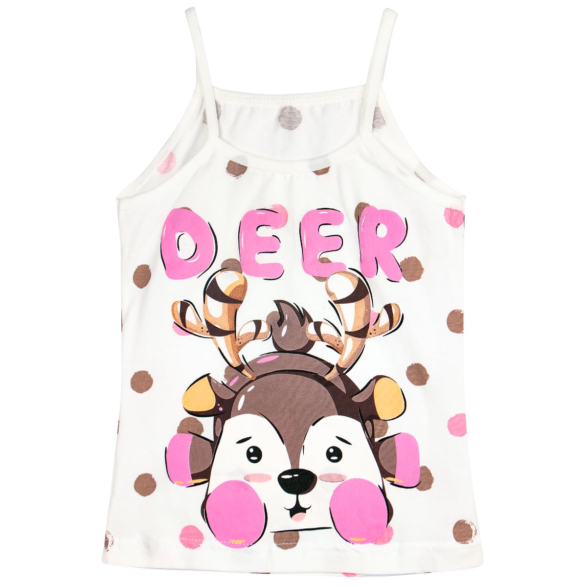 Майка с узкими бретелями, декорированная принтом. Натуральный материал, не вызывает аллергии и раздражения кожи, прекрасно сохраняет тепло. Обладает высокими гигроскопичными и воздухопроницаемыми свойствами. Красивый и комфортный выбор нижнего белья на каждый день.