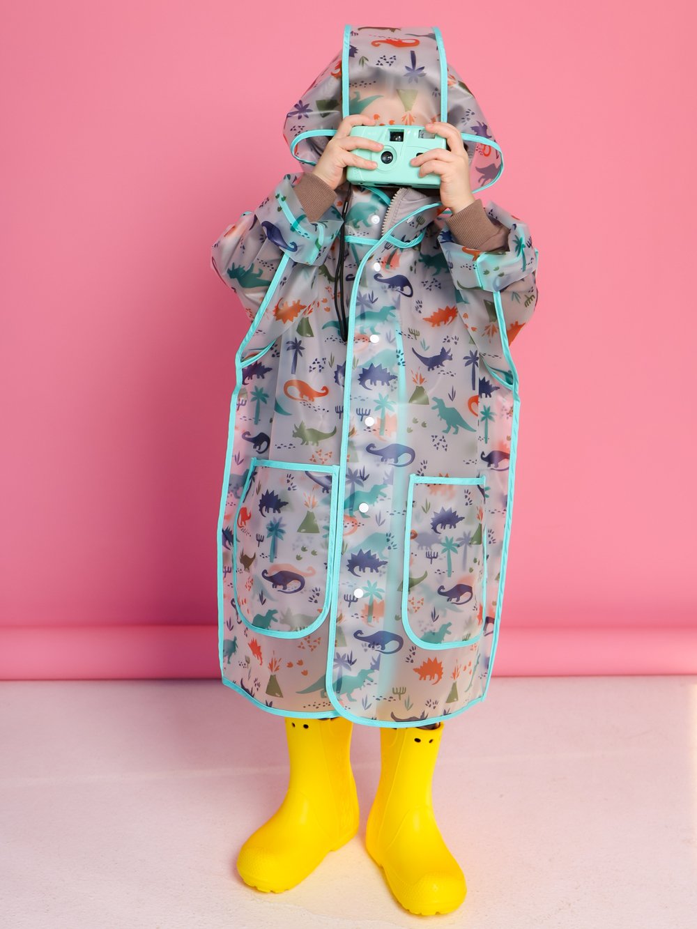 Плащ (унисекс) с капюшоном, большого объема, прямого силуэта, со спущенным линией плеча, на кнопках, с накладными карманами. Швы обработаны бейкой  из плащевой ткани.