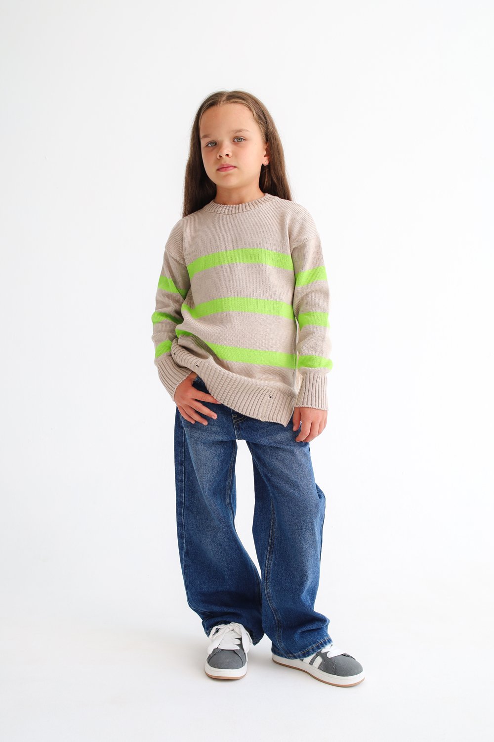 Джемпер детский вязаный Полоска латте-салатовый